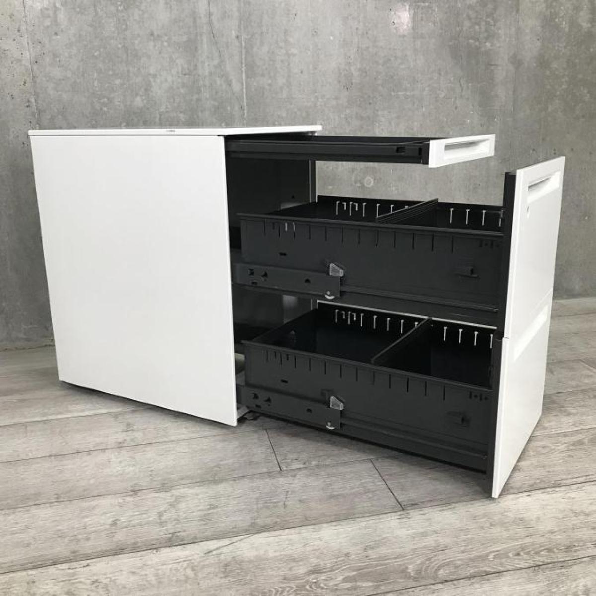【フリーアドレスの必須品!収納とワークスペースの拡張にオススメ!】■オカムラ(okamura)製 アドバンス(ADVANCE)シリーズ 3段ワゴン フリアド用 ■高さ:650mm ■シリンダー錠 ■ホワイト在庫がある店舗一覧