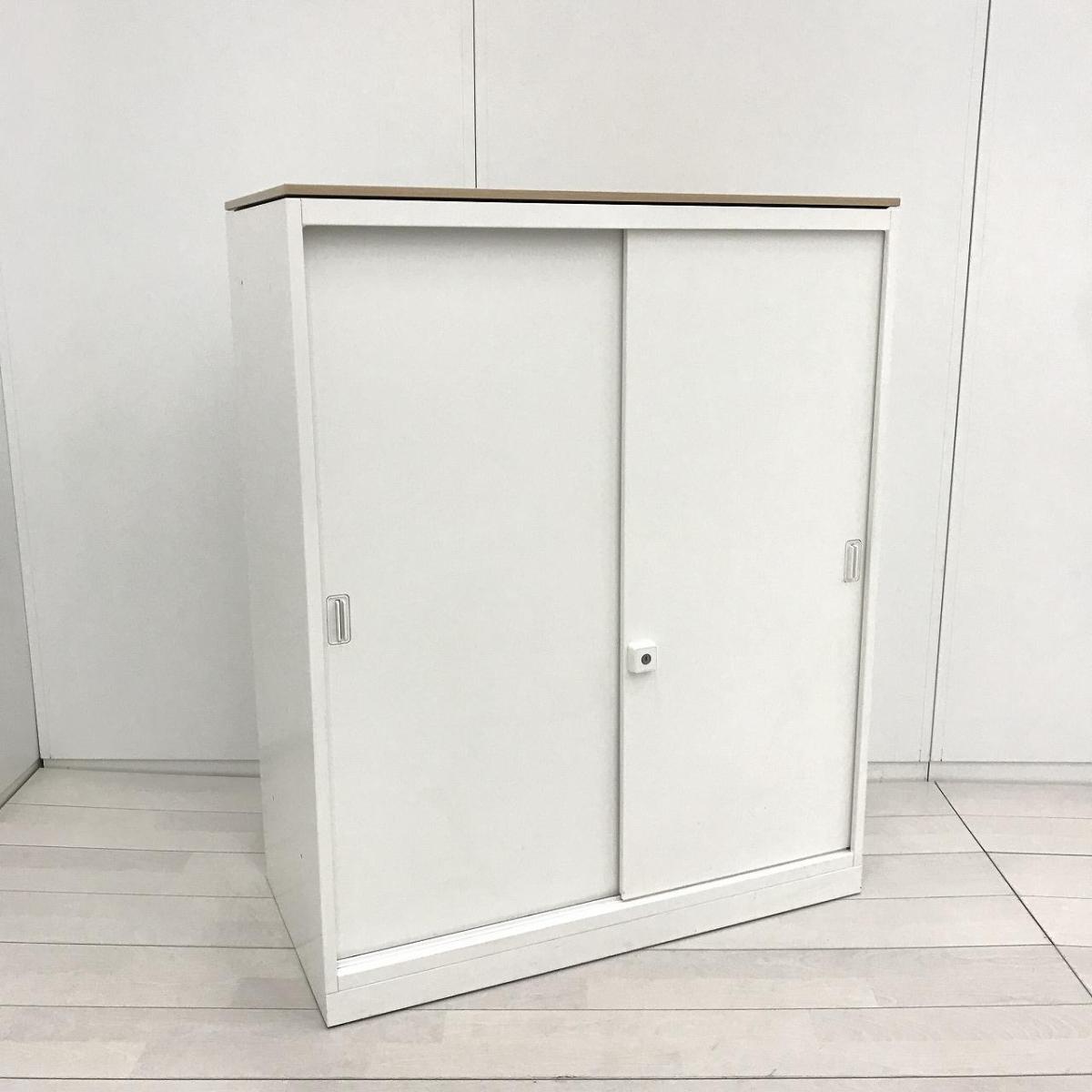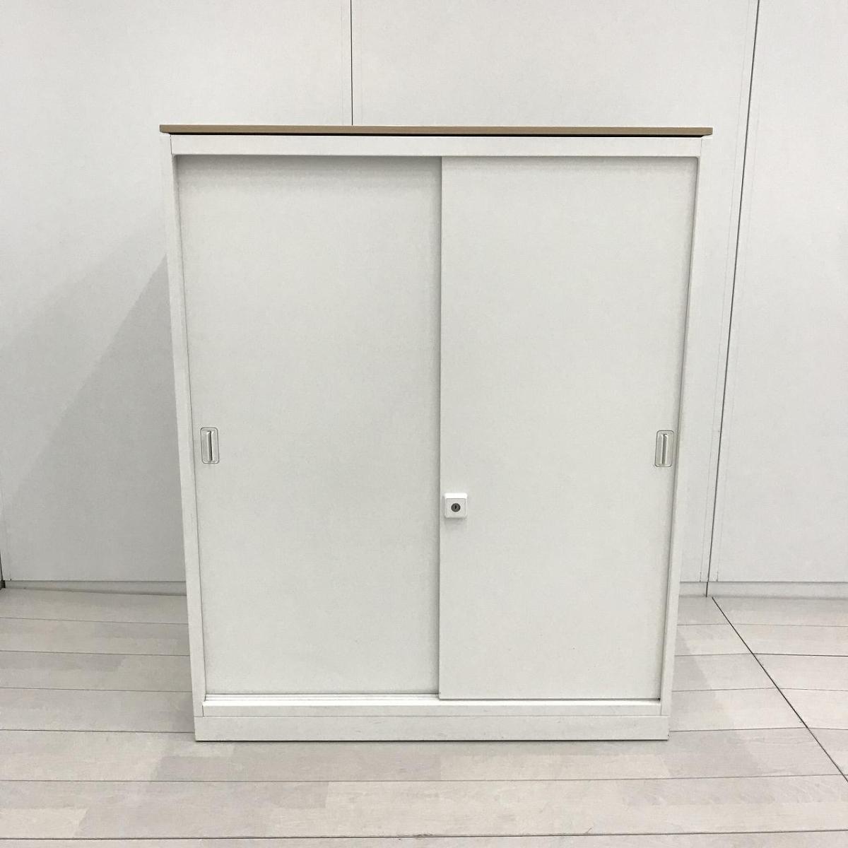 ■オカムラ(okamura)製 ■レクトラインシリーズ ■ローキャビネット ■両開き書庫 ■ホワイト ■シリンダー錠 【弊社使用欄:A01054680】【KN】
