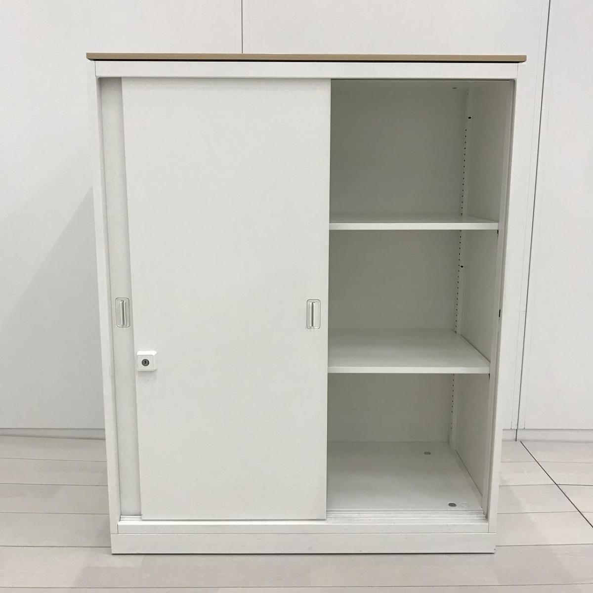 人気のホワイト色、観音開き扉タイプの書庫です。