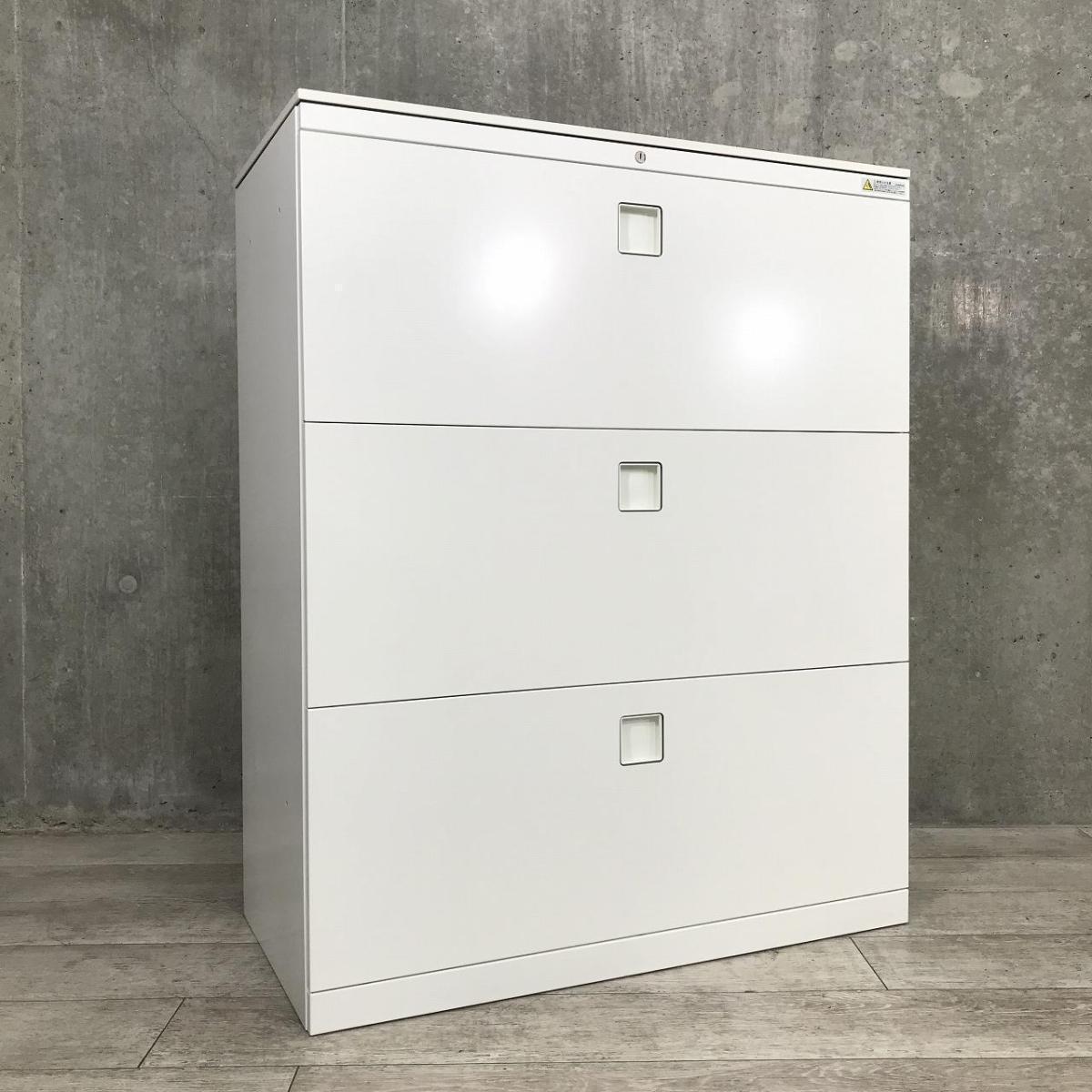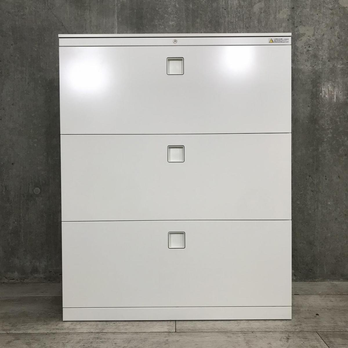 【大容量の三段キャビネット!天板付きなのでカウンターとしても使える!】■オカムラ(okamura)製 レクトラインシリーズ 3段ラテラル書庫 ■シリンダー錠 ■ホワイト