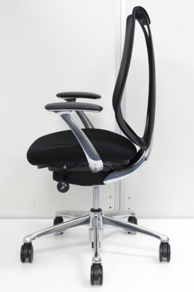 【優れたデザイン性の高級チェア!リングフレームとメッシュが背中をやさしく受け止める!】■オカムラ(okamura)製 サブリナ(Sabrina)チェア 肘付ハイバック ■ブラック ■背面メッシュ ■固定肘
