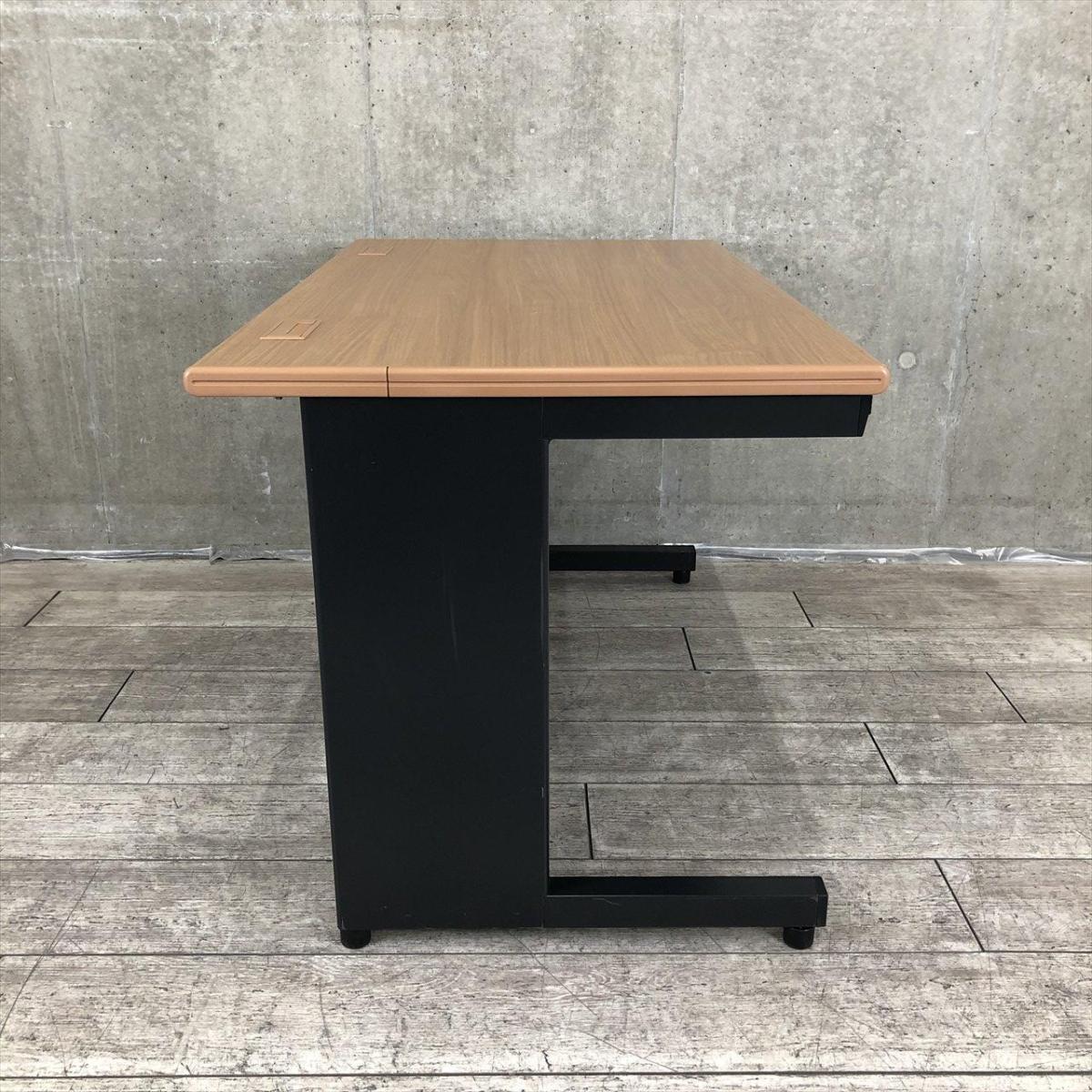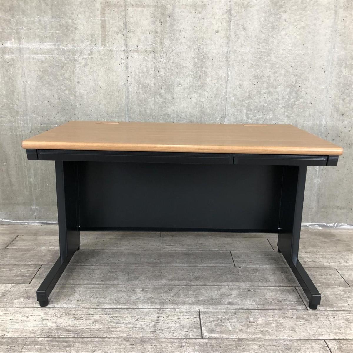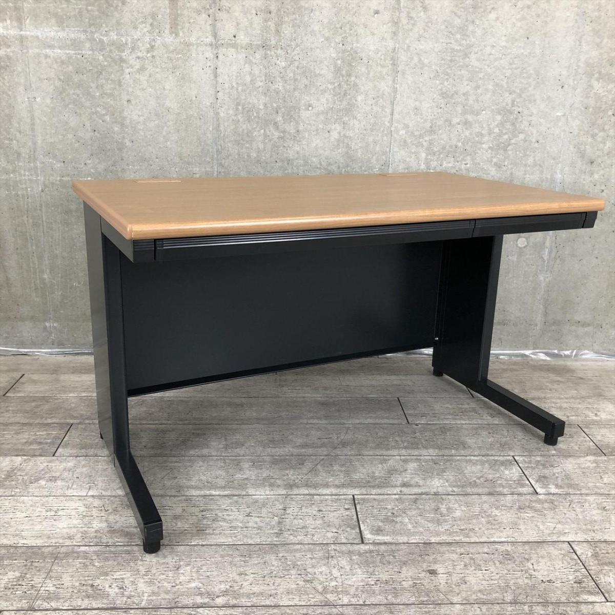 【希少なブラック基調の平机が入荷!定番サイズの幅1200㎜!シックなオフィスを作成したいお客様におすすめ!】■プラス(PLUS)製 リード(LEED)シリーズ 平机 引き出し付き W1200×D700㎜ ■天板:ミディアムウッド/脚:ブラック ※1台のみ配線カバー、サイドパーツ無し