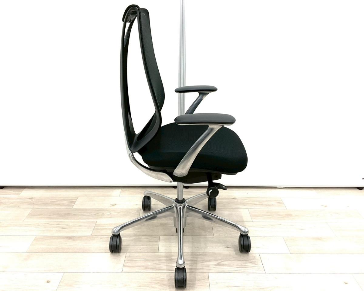 【優れたデザイン性の高級チェア!リングフレームとメッシュが背中をやさしく受け止める!】■オカムラ(okamura)製 サブリナ(Sabrina)チェア 肘付ハイバック ■ブラック ■背面メッシュ ■固定肘