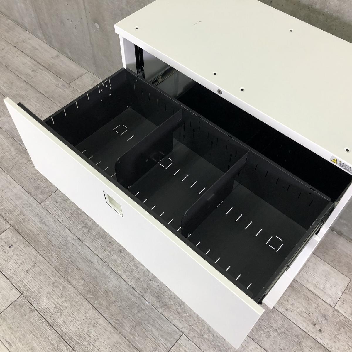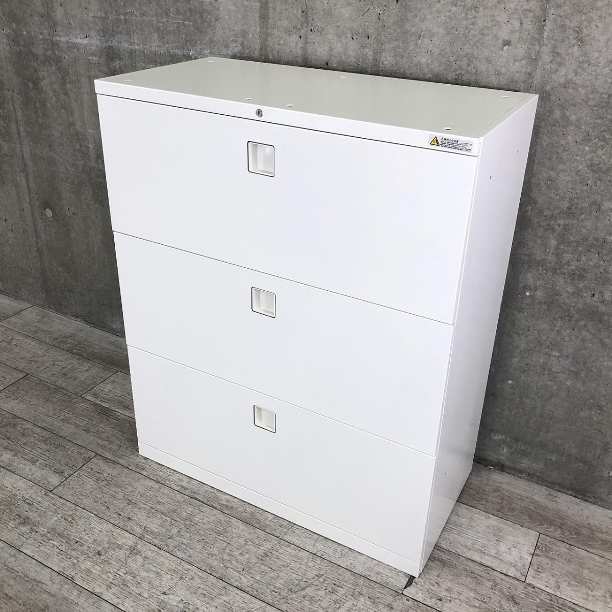 【大容量の三段キャビネット!天板付きなのでカウンターとしても使える!】■オカムラ(okamura)製 レクトラインシリーズ 3段ラテラル書庫 ■シリンダー錠 ■ホワイト