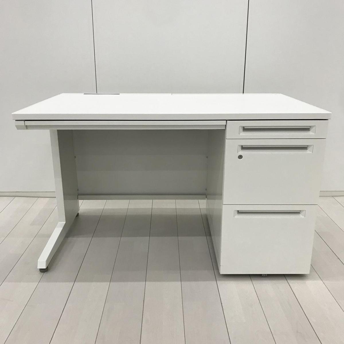 【収納も充実で使いやすい!幅1200㎜の定番人気サイズ】■オカムラ(okamura)製 アドバンスシリーズ 片袖机 W1200×D700㎜ ■シリンダー錠 ■ホワイト
