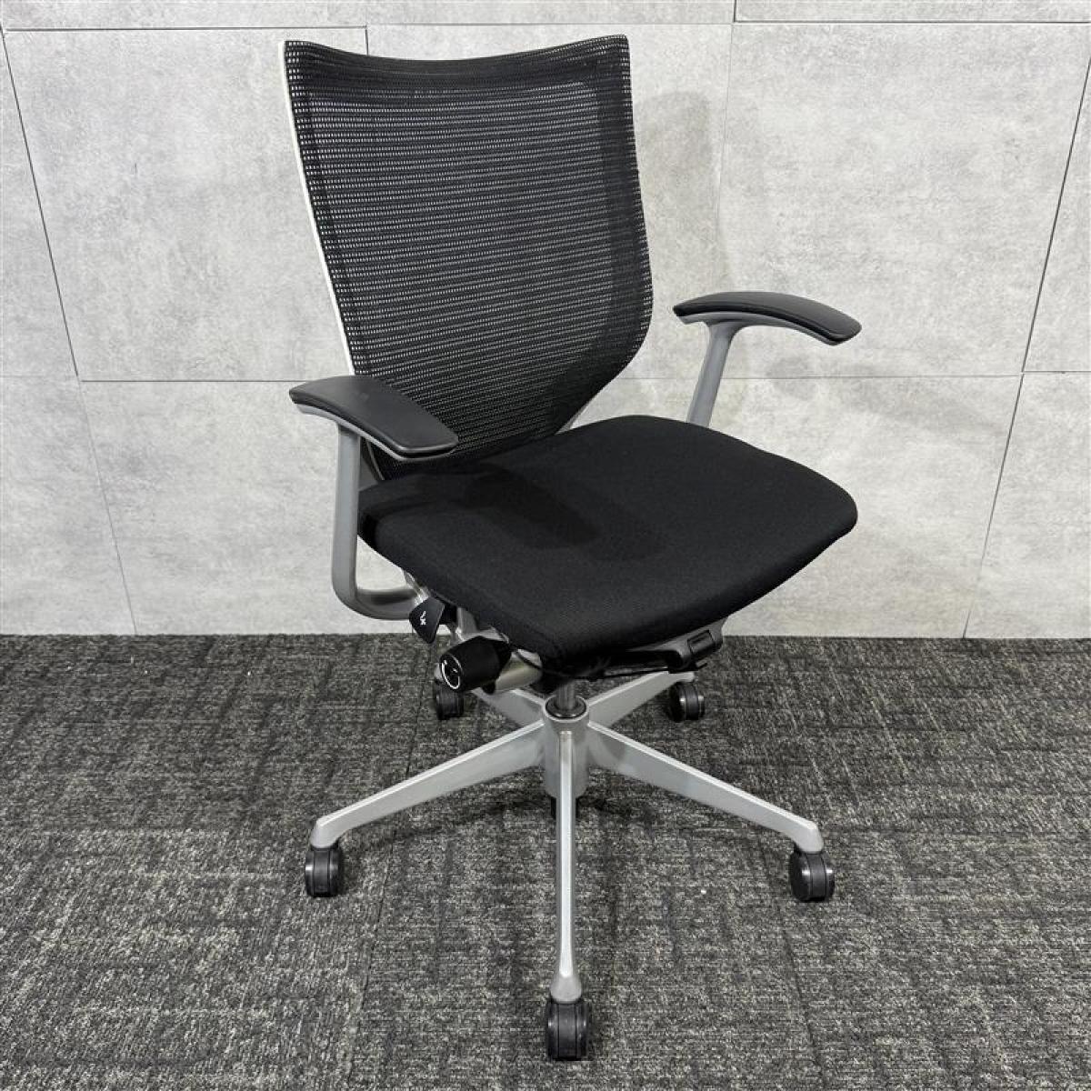【中古】 バロンメッシュチェア オカムラ/okamura 肘付ローバックチェア 571313