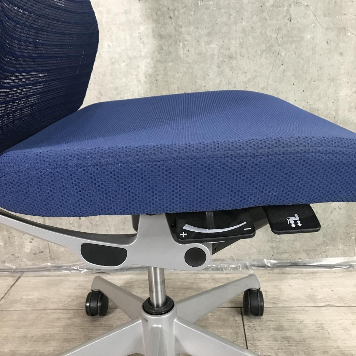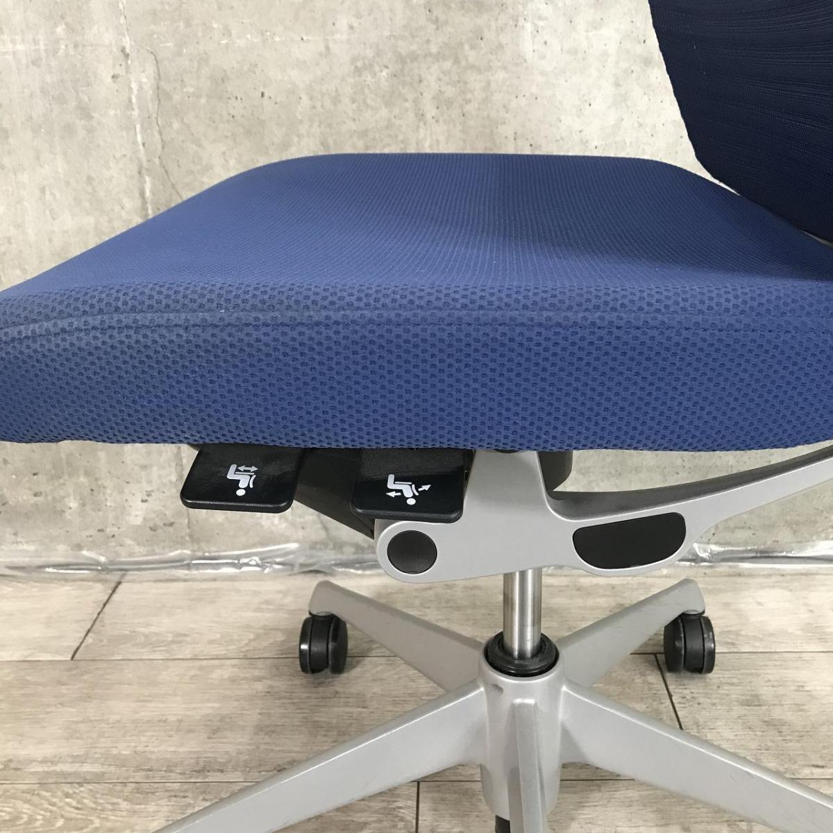 【どんな空間にも調和するデザインと最上級の操作性!人気のメッシュチェア!】■オカムラ(okamura)製 コーラル(Choral)シリーズ ミドルバック ■メッシュ背面 ■ランバーサポート/ハンガー付き ■肘無し ■ミディアムブルー 福岡 中古家具 安い 激安