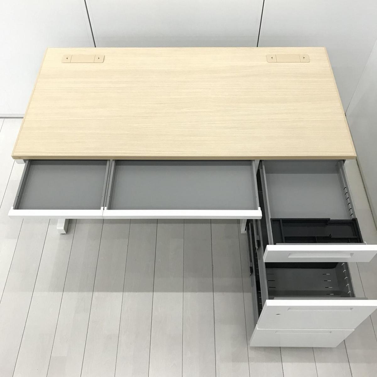 【4台入荷】【イナバの技術が詰め込まれたスタンダードなオフィスデスク!収納も充実で使いやすい!】■イナバ(Inaba)製 デュエナシリーズ 片袖机 W1400×D700㎜ ■天板:木目ナチュラル/ホワイト ■シリンダー鍵
