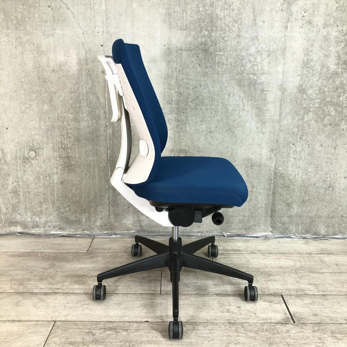 在宅勤務/大人気/定番 コクヨ(KOKUYO)製 ウィザード3(wizard3)チェア 肘無ハイバック ■ランバーサポート・ハンガー付 ■プルシアンブルー×ホワイトシェル×ブラック脚