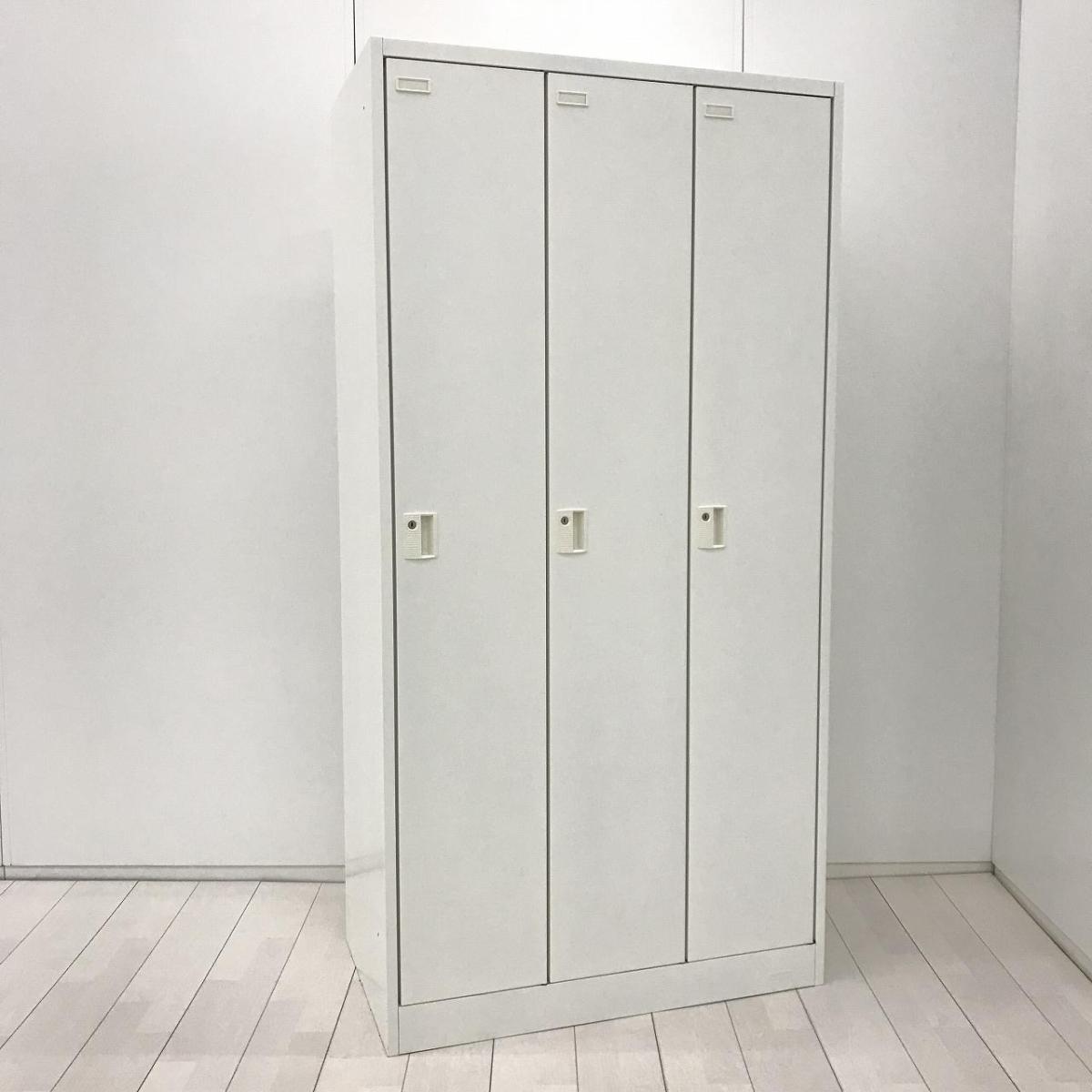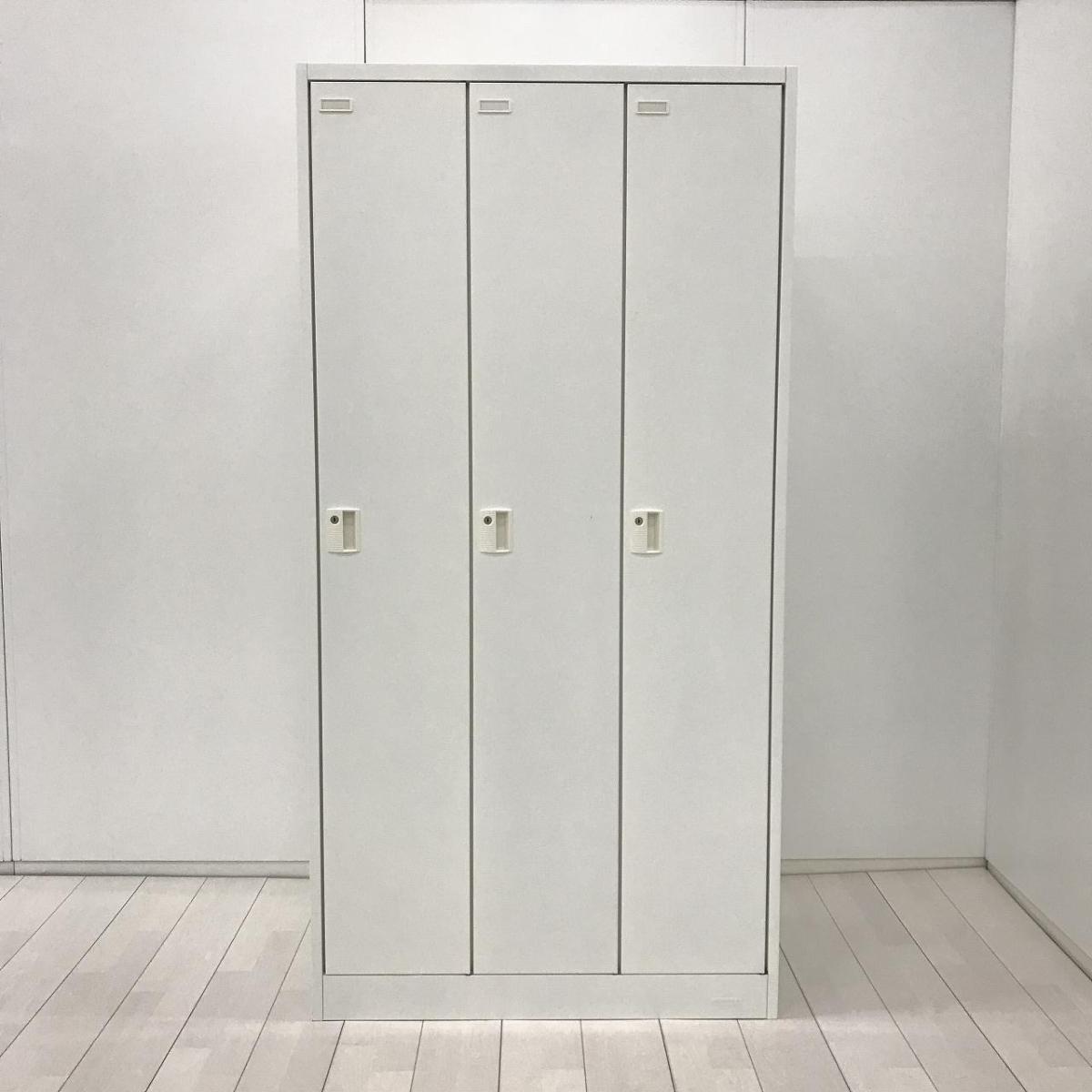 【衣類や貴重品の管理に便利な縦型3人用ロッカー!】■オカムラ(okamura)製 FZロッカー 3人用更衣ロッカー ■シリンダー錠 ■ホワイト ※側面穴あき・穴周り凹凸あり- 茨城南店