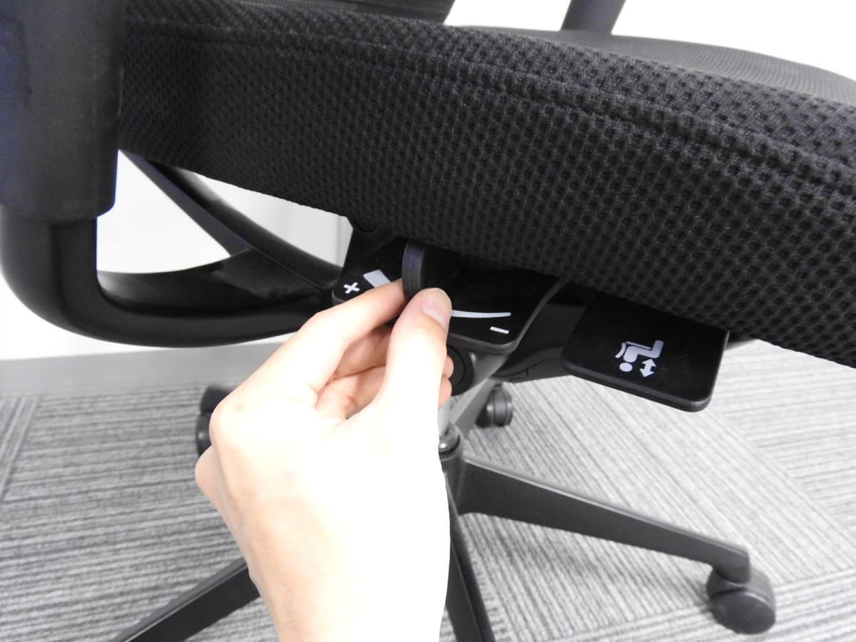 座面の高さや前後などの基本的な調整レバーが座面裏の前方に集約されており、姿勢を変えずに調節ができます。