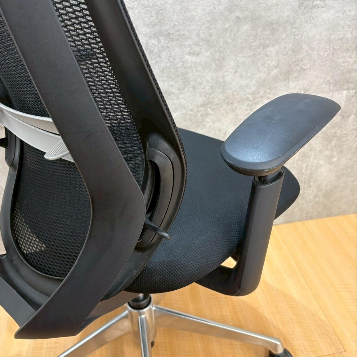 肘部分に若干の使用感あり/前傾チルト搭載のオカムラ・シルフィ入荷!高機能メッシュチェアの中でも特に人気のモデルで、長時間作業でも快適。可動肘・ハイバック仕様のブラックタイプでオフィス環境の質を高めたい方におすすめです/オススメ(おすすめ) /人気商品【弊社使用欄:A01044737】■オカムラ/シルフィ