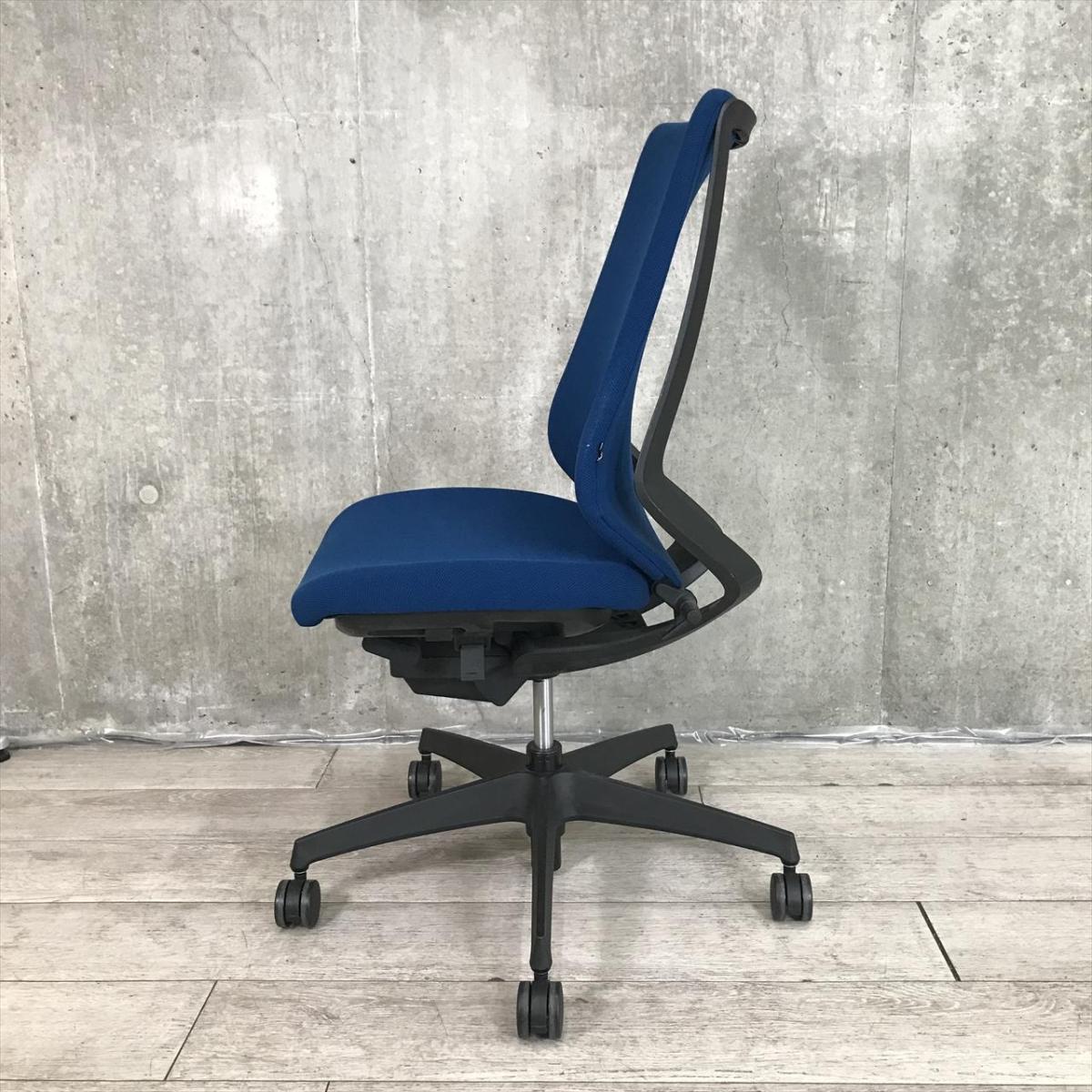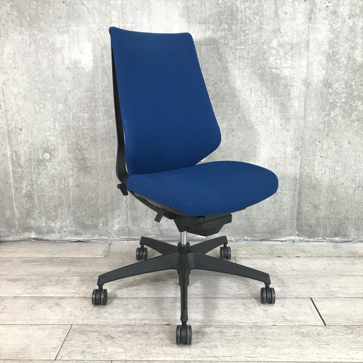 【在庫入替セール】コクヨ デュオラ 肘無しモデル クッションタイプ ブルー×ブラックフレームの定番のカラーリング コートハンガー付き ※背もたれに破れ有り【T9】
