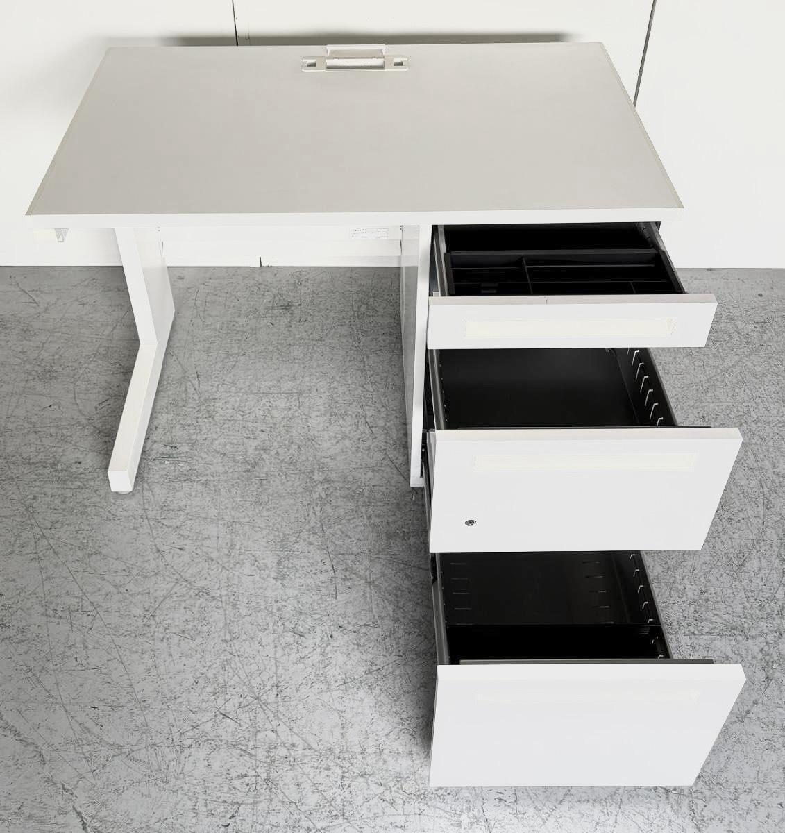 収納も充実!省スペースにおすすめの横幅1000㎜奥行600㎜のオフィスデスク! ■内田洋行/スカエナシリーズ/ホワイト 片袖机 ■W1000×D600mm ■シリンダー錠 ■引き出し右袖3段- 立川・八王子店