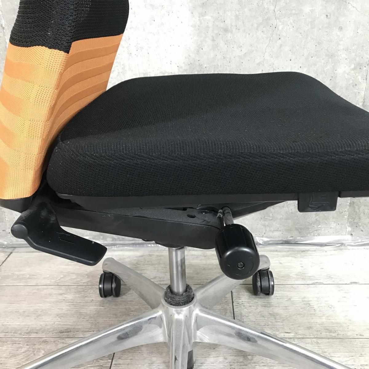 ロッキング不良【座り心地GOOD!】【人間工学に基づいた快適な座り心地!背あてのしなやかな曲線が背中にフィット!】■オカムラ(okamura)製 フィーゴ(feego)チェア 肘無しハイバック ■背面メッシュ ■オレンジ×ブラックサーキュラーバリューCO2削減量の算出について