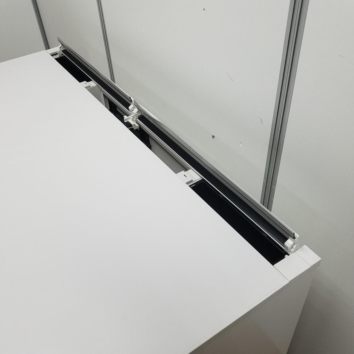 - 対向配線も横配線も自在なケーブリングが可能。幕板内側に余長ケーブルやOAタップを収納できる配線ダクトを標準装備。