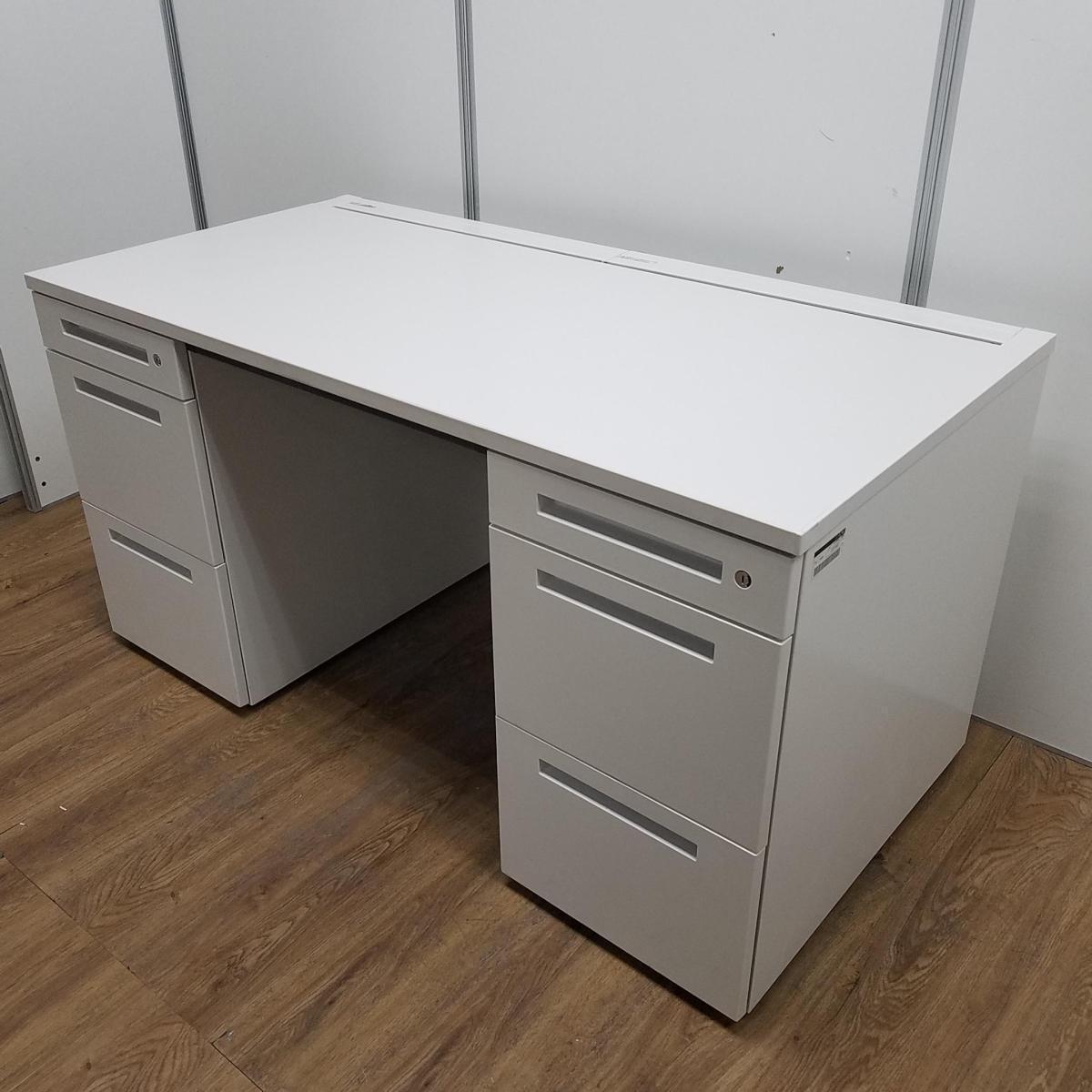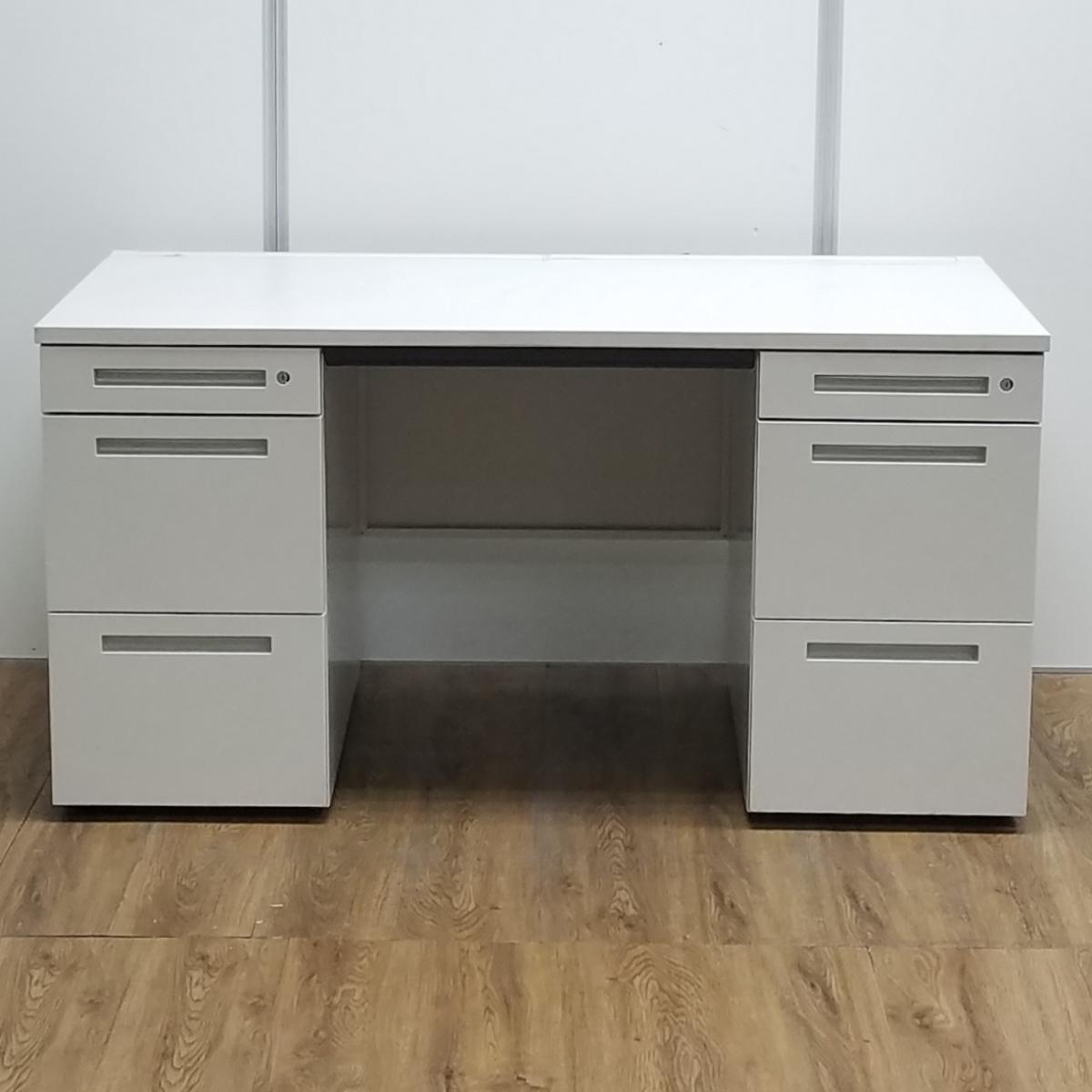 【収納スペースも充実で使いやすい!】■イトーキ製 両袖デスク W1400×D700×H720mm ホワイト【ITOKI CZR】