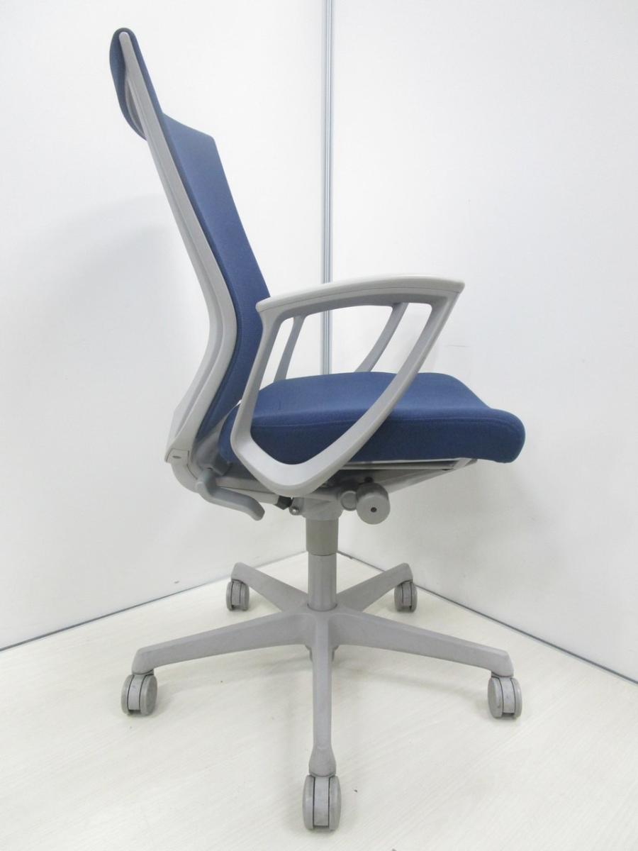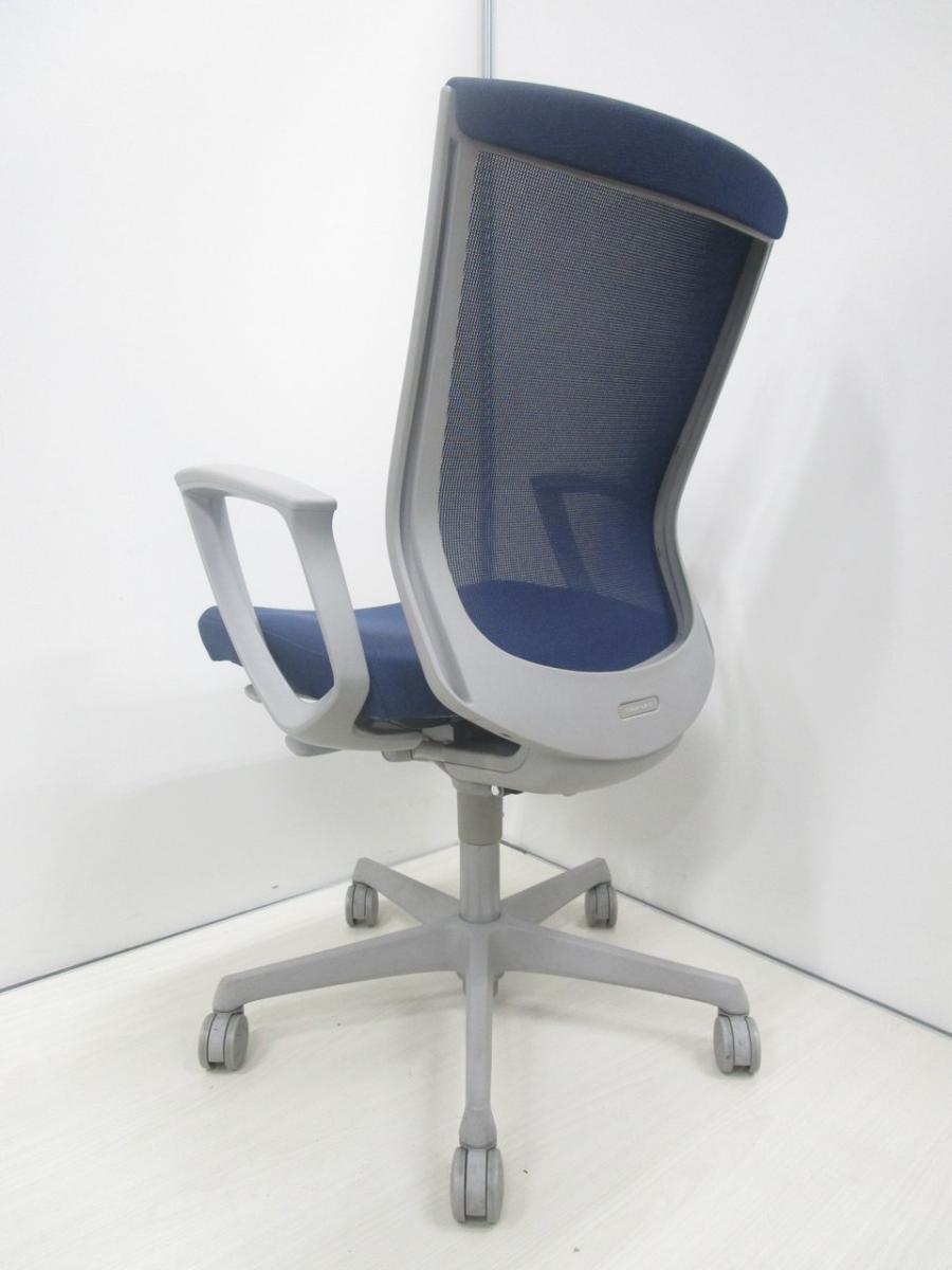 【人間工学に基づいた設計で快適なデスクワークを実現!】 ■オカムラ製 エスクードメッシュチェア 肘付 ダークブルー ハイバック ■機能充実のメッシュチェアー!- 川崎店
