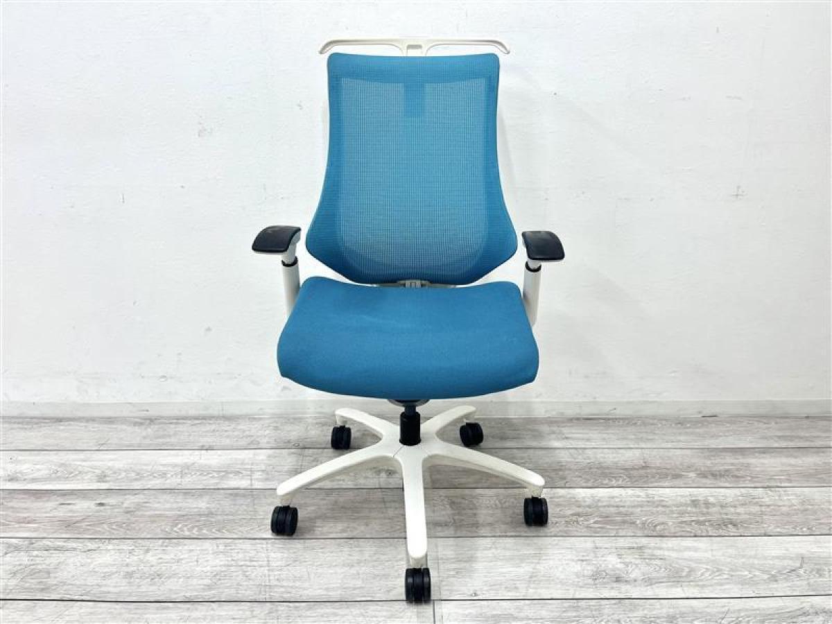 【在庫入替の為、4脚限定でお安く!】【姿勢の変化にフレキシブルに対応!】【スタイリッシュで座り心地も抜群な高機能チェア】■イトーキ(ITOKI) エフ(f)チェア 肘付き ハイバック 背面メッシュ ■可動肘 ■ストロングブルー×ホワイトシェル ■ハンガー付き