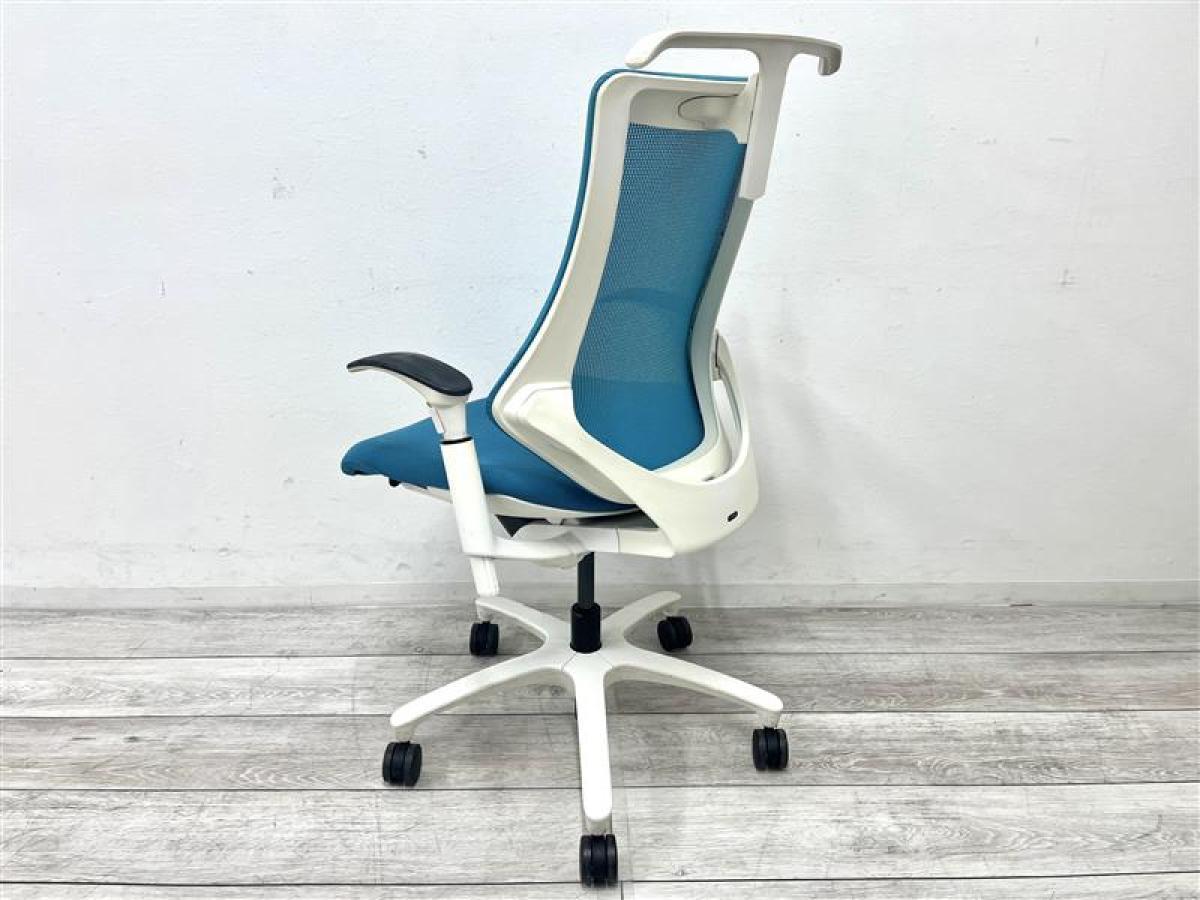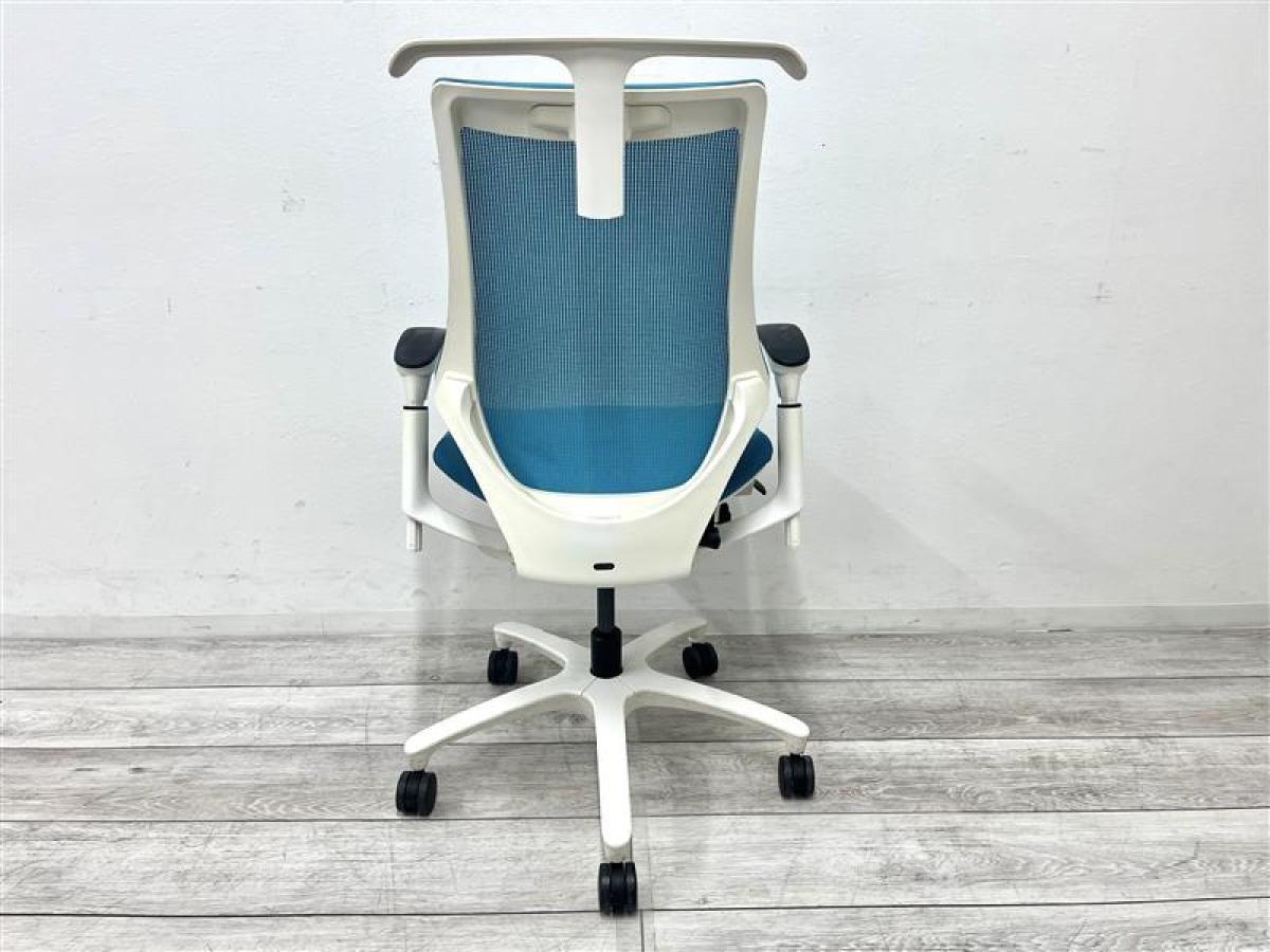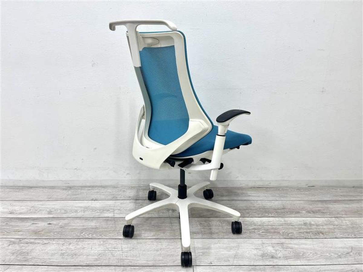 【定価約11万円】【姿勢の変化にフレキシブルに対応!】【スタイリッシュで座り心地も抜群な高機能チェア】■イトーキ(ITOKI) エフ(f)チェア 肘付き ハイバック 背面メッシュ ■可動肘 ■ストロングブルー×ホワイトシェル ■ハンガー付き