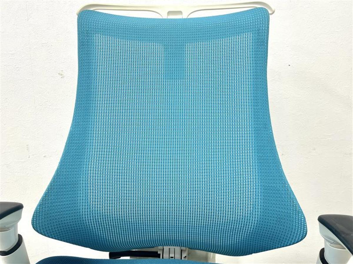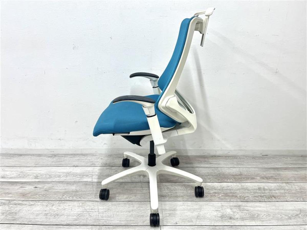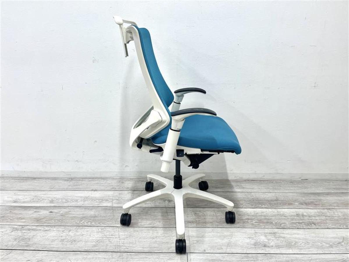 【定価約11万円】【姿勢の変化にフレキシブルに対応!】【スタイリッシュで座り心地も抜群な高機能チェア】■イトーキ(ITOKI) エフ(f)チェア 肘付き ハイバック 背面メッシュ ■可動肘 ■ストロングブルー×ホワイトシェル ■ハンガー付き