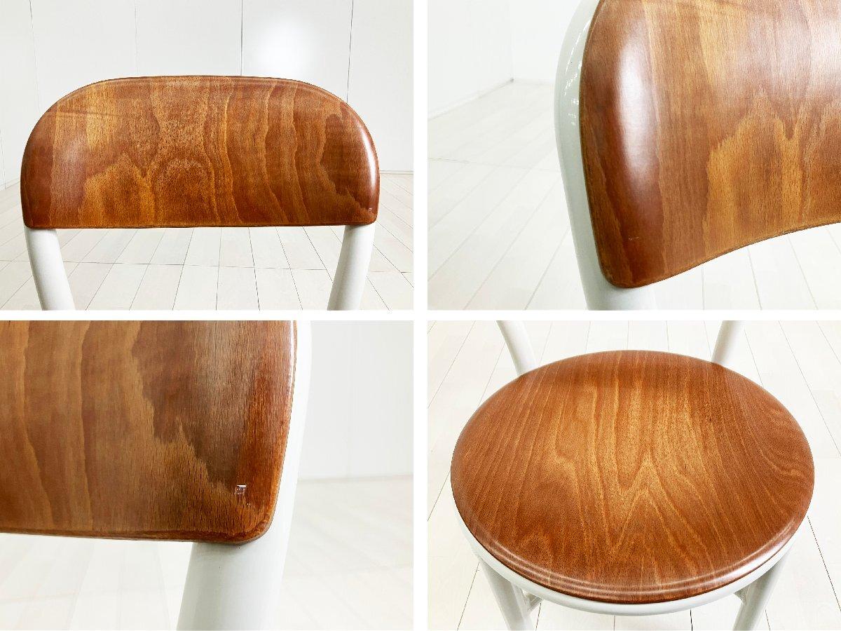 アルミチューブとプライウッド合板という異素材を組み合わせたシンプルなスツール。座面は座った際に身体がチェアへフィットするようカーブがついており、しっかりとした見た目の印象より比較的軽量。座面のプライウッドは耐久性やメンテナンス性に優れ、半屋外での利用も可能です