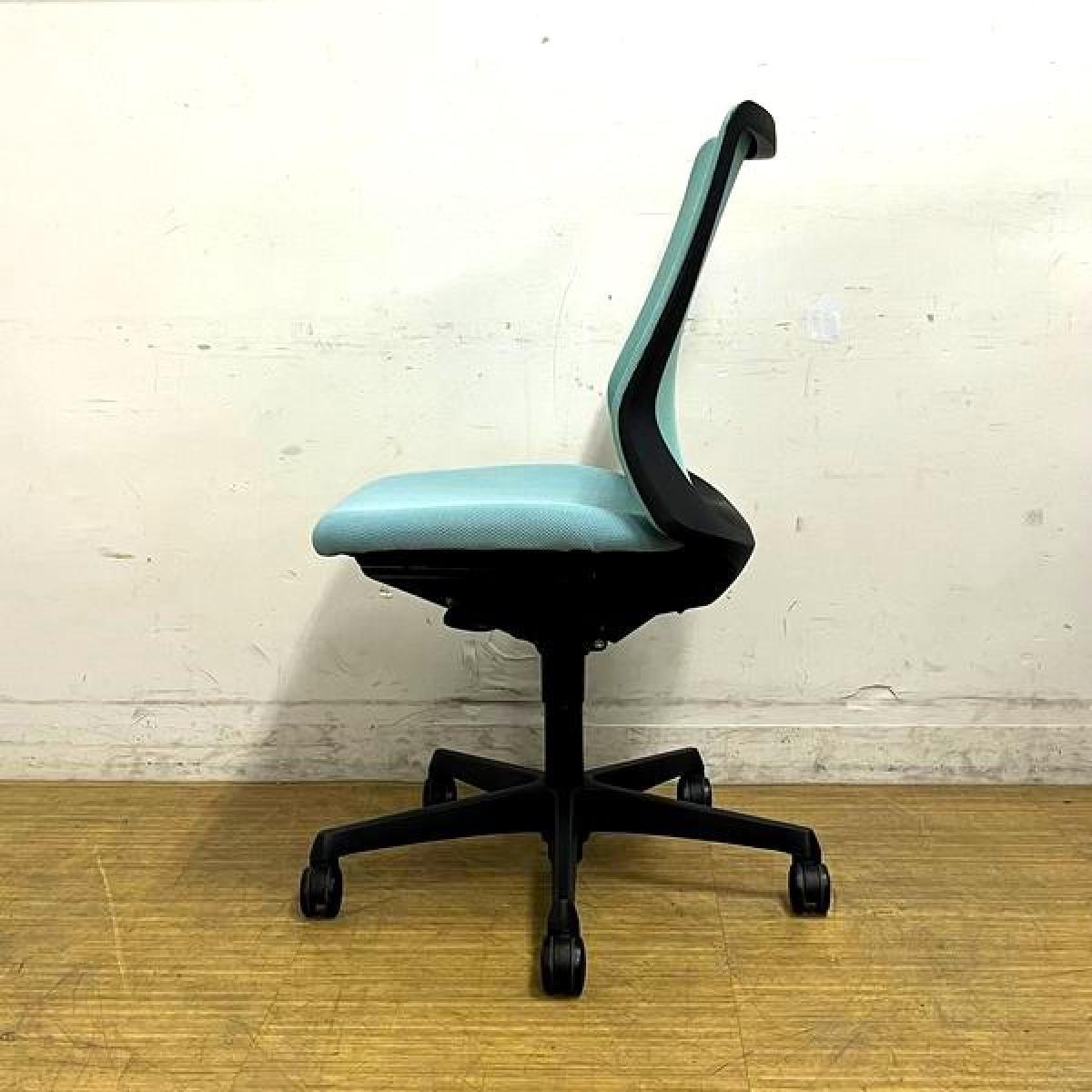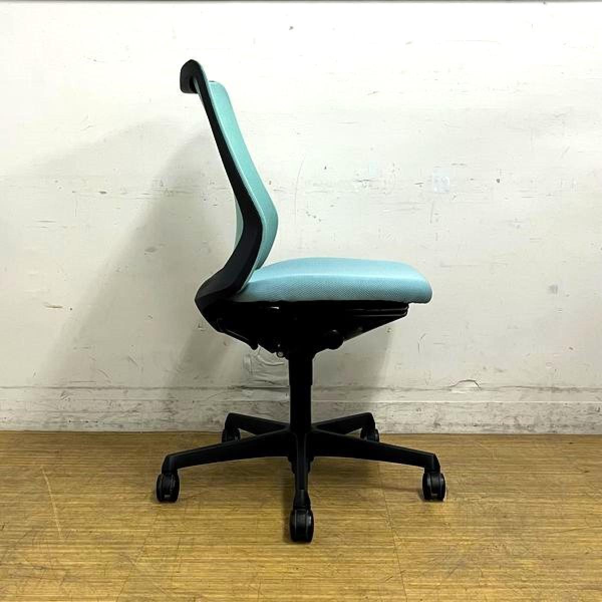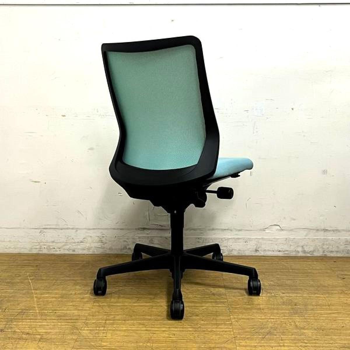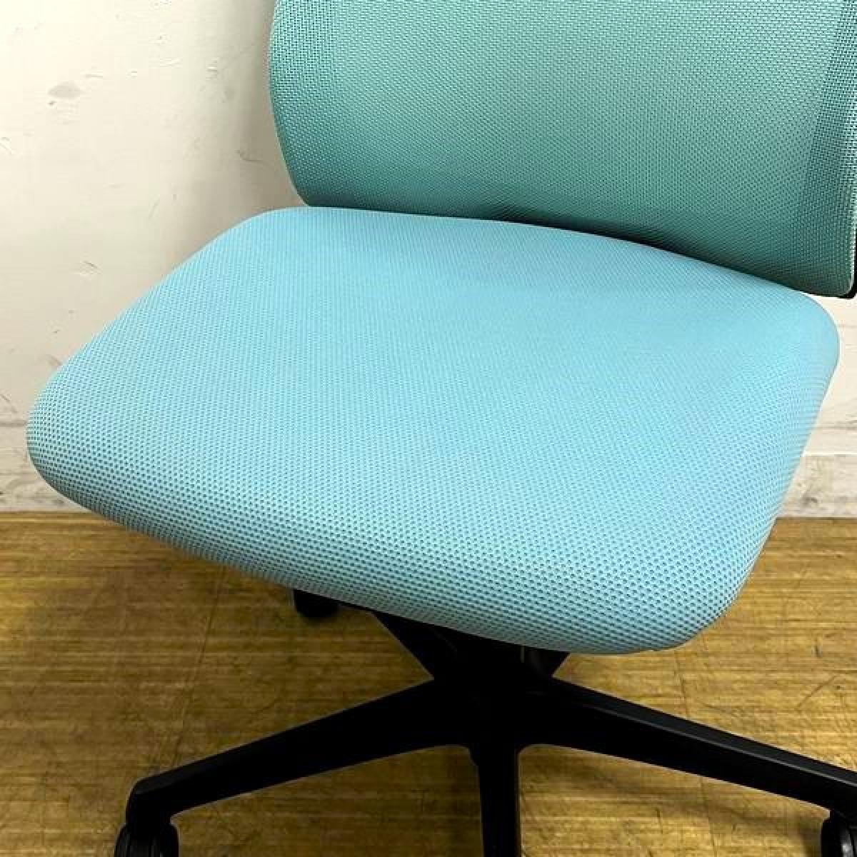 【腰まわりをしっかりホールド!長時間作業も快適フィット!】■オカムラ(okamura)製 フルーエントチェア(Fluent) ローバック 肘無し ■背面メッシュ ■セージブルー×ホワイトシェル〈岐阜・愛知・三重・静岡・福井〉