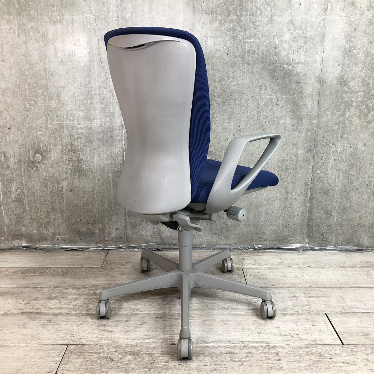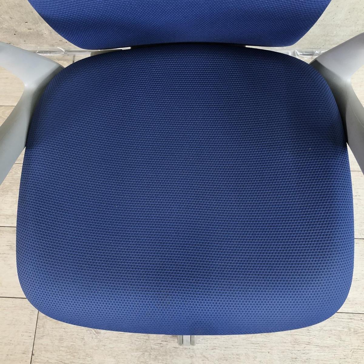 【関西倉庫在庫品】【機能充実のワーキングチェア!身体を包み込むやさしい座り心地!】■オカムラ(okamua)製 スラート 肘付ハイバックチェア ■ブルー(ミディアムブルー) ■可動肘【弊社使用欄:A01050710】