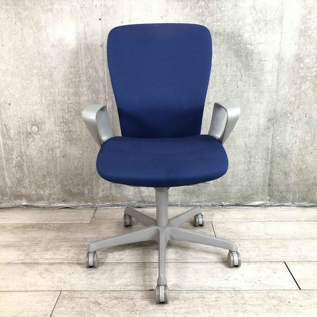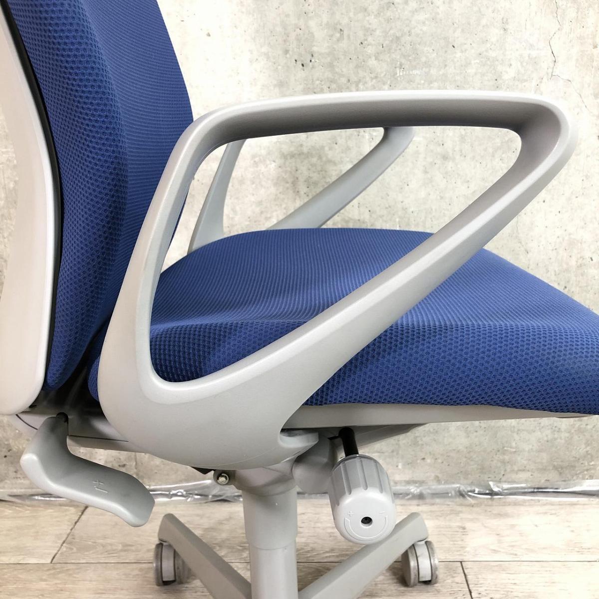 ★オカムラ製 スラート ミディアムブルー グレーフレーム 肘付き ローバック デザインアーム※固定肘 サークル肘 機能充実のワーキングチェア! 身体を包み込むやさしい座り心地! 肘付きハイバックチェア!!サーキュラーバリューCO2削減量の算出について