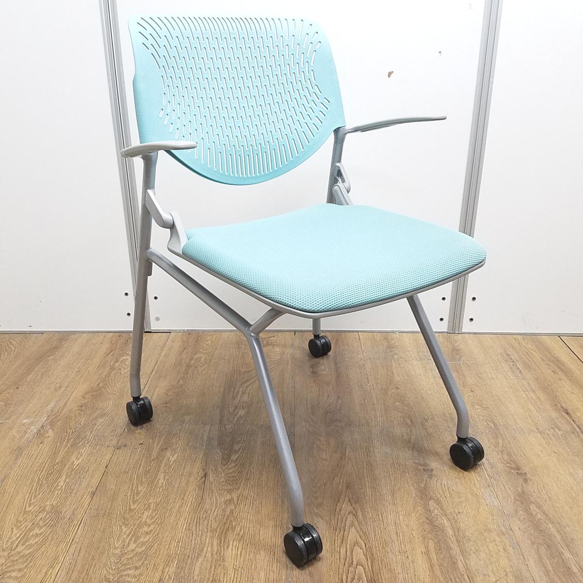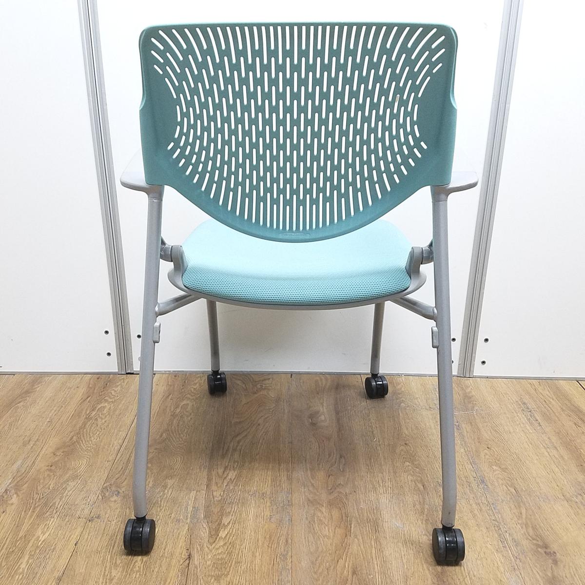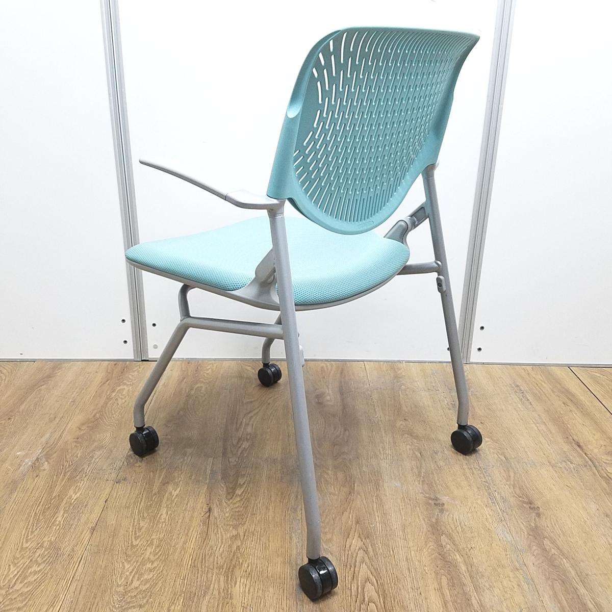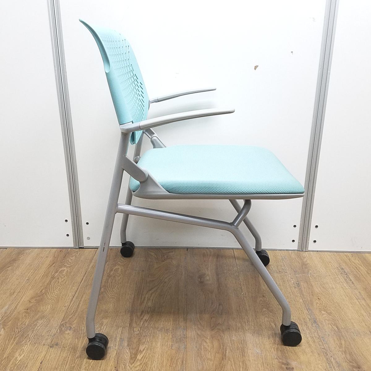 ★【T4】【商品入替のため、残り4脚限り】オカムラ製 ルナ セージ シルバーフレーム 肘付き 背:パット無し ポップなデザインでコミュニケーションも活性化! ネスティングチェア!!- 京都東寺店