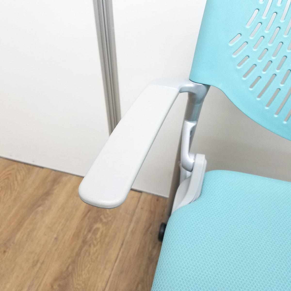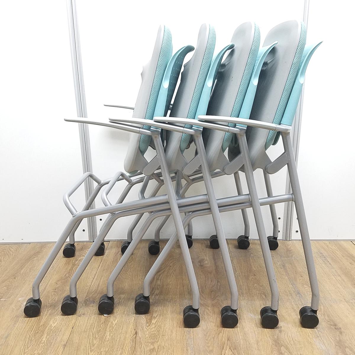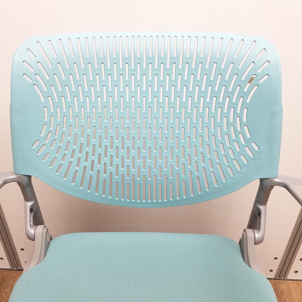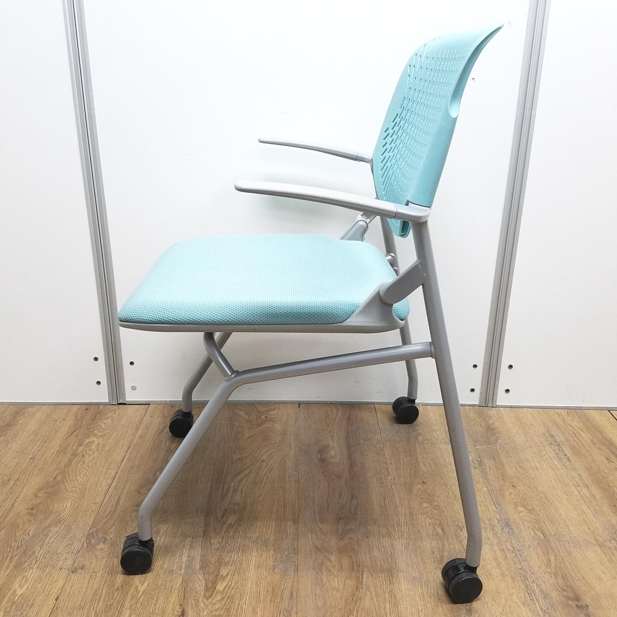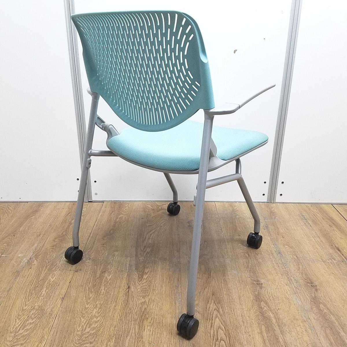 ★【T4】【商品入替のため、残り4脚限り】オカムラ製 ルナ セージ シルバーフレーム 肘付き 背:パット無し ポップなデザインでコミュニケーションも活性化! ネスティングチェア!!- 京都東寺店