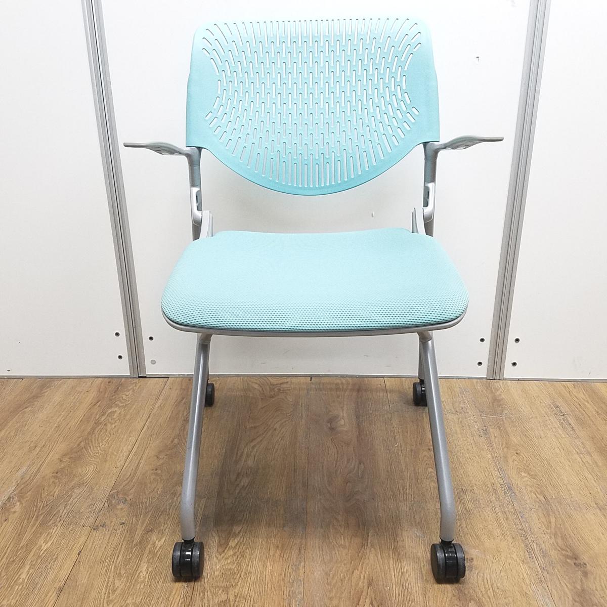 【在庫入替えセール!】【使わない時はコンパクトに収納!】人気の色のネスティングチェア! ■オカムラ/ルナ/ブルー【AD】
