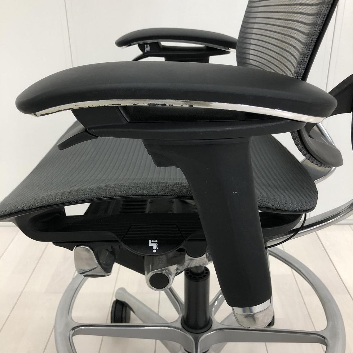 【最上位クラスの上質なハイチェア登場!】■オカムラ コンテッサセコンダ ハイチェア 可動肘付 座面メッシュ ハンガー付 足掛けリング付 ■昇降デスクやハイテーブルでのご利用にオススメ!【Contessa seconda】★