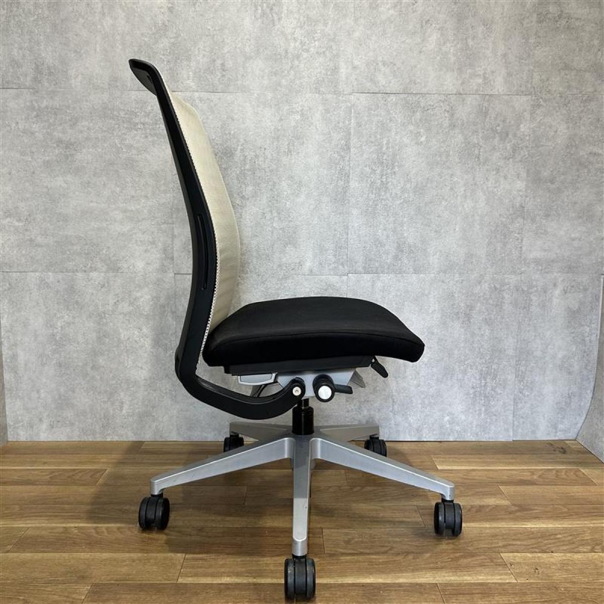 快適な座り心地に不可欠な調節機能である、上下昇降、座面の奥行き調整、リクライニングなどを備えており、操作もわかりやすく好評です。 特に、座面の奥行きは、座面下の左右に通った細いバーで調整でき、座ったままで軽やかに滑るように調整が可能です。 価格面では、新品では高めですが、中古は流通も多く、定価の3割前後の価格で高級チェアの座り心地を手に入れることができます!