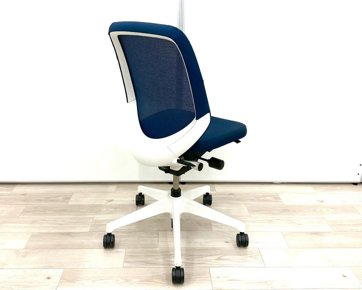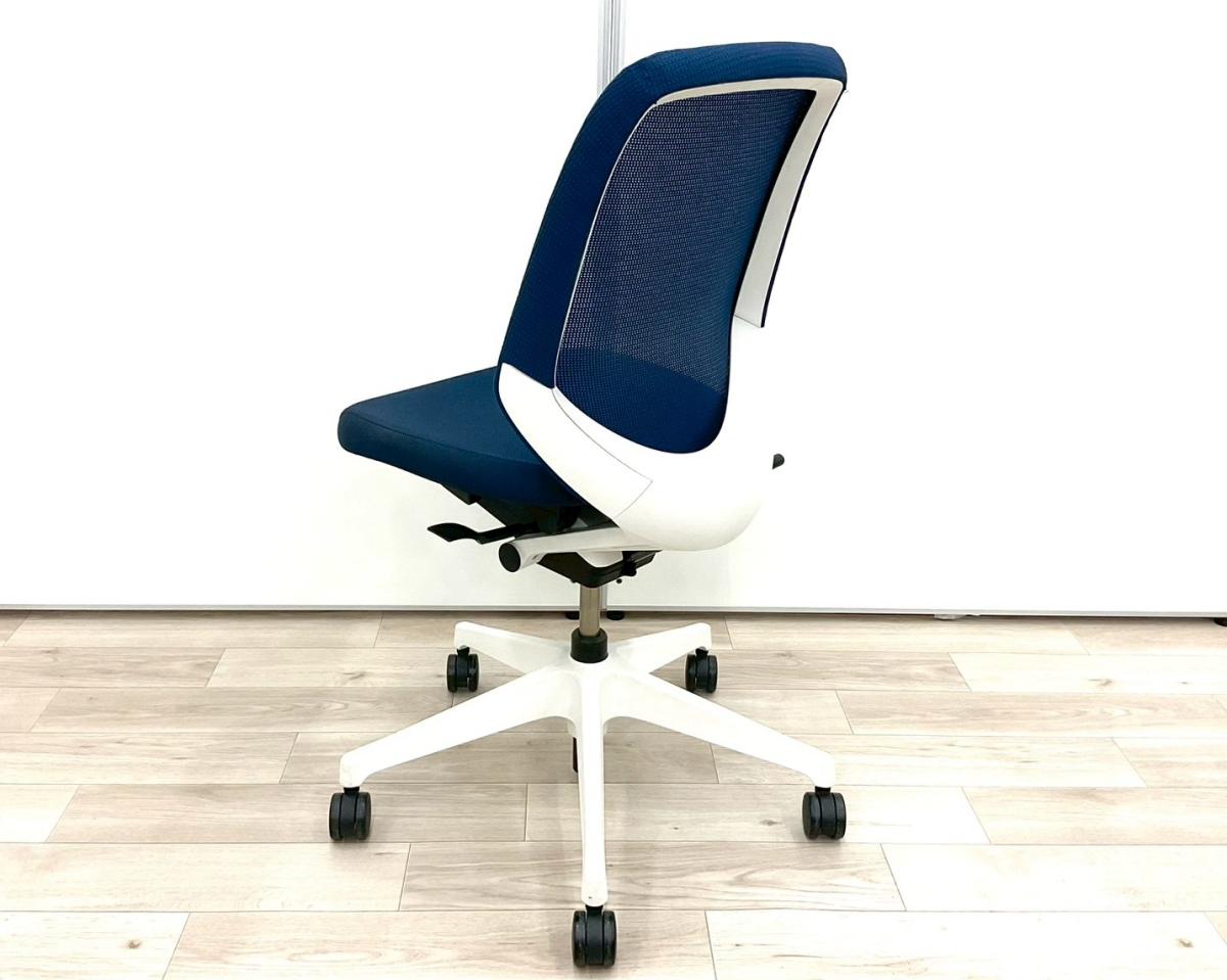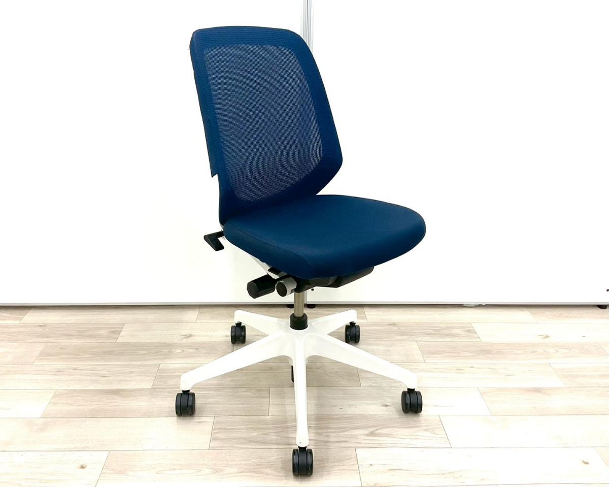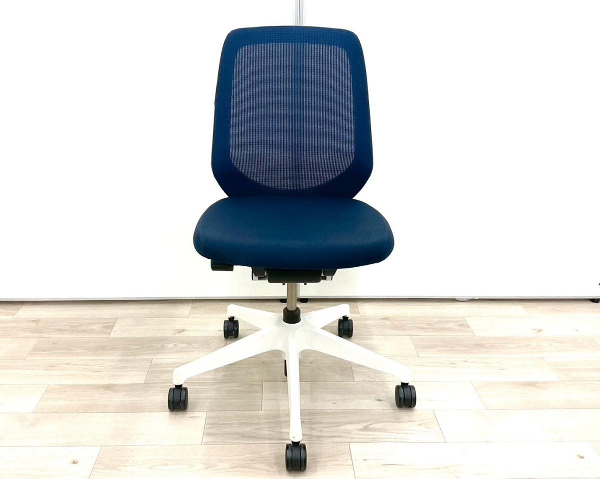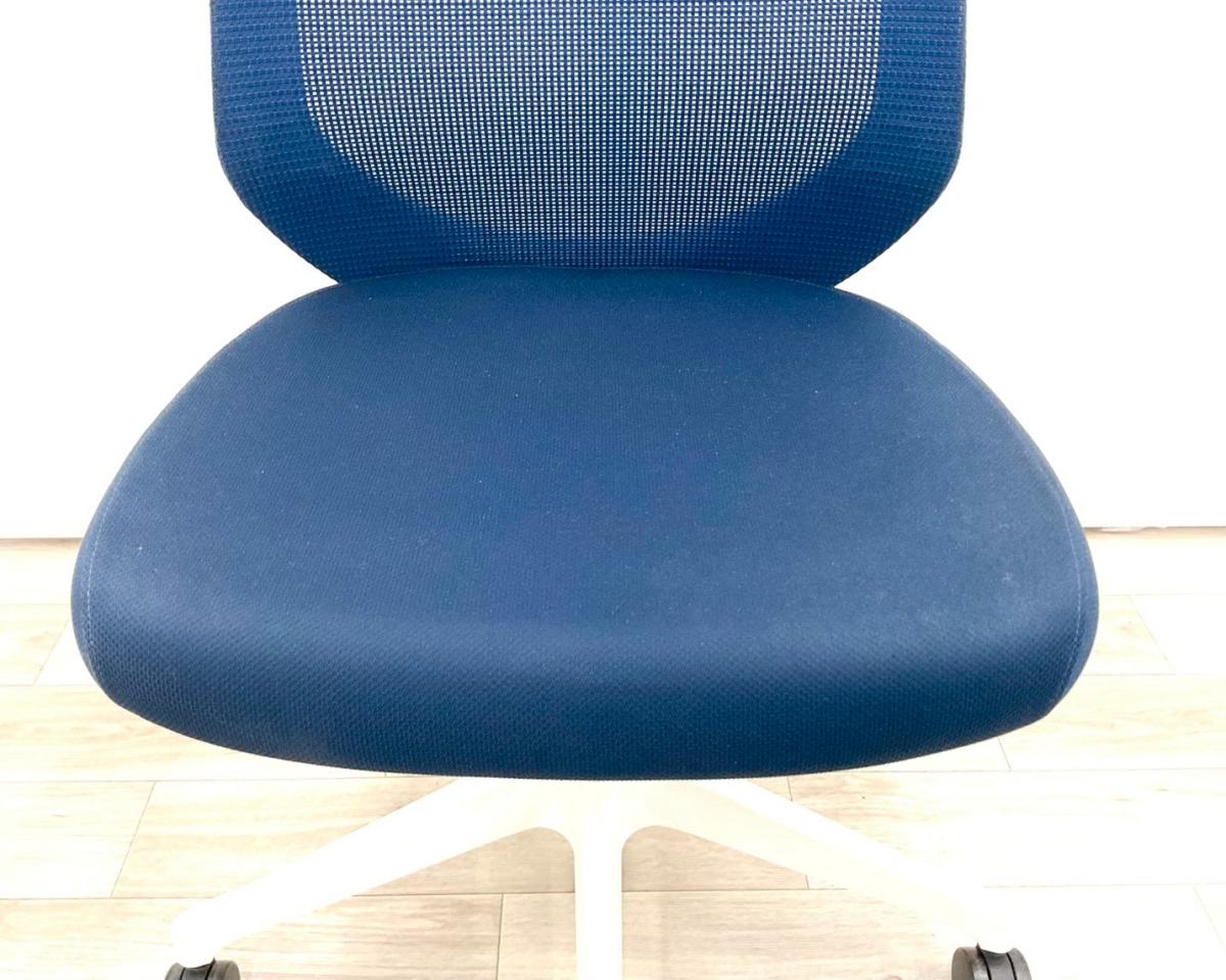 【定価約8万円】【オフィスの今を、美しく快適に!落ち着きのある新世代ワークチェア】■イトーキ(ITOKI)製 ノートチェア 肘無ハイバック ■ネイビーブルー×ホワイトシェル ■背面メッシュ