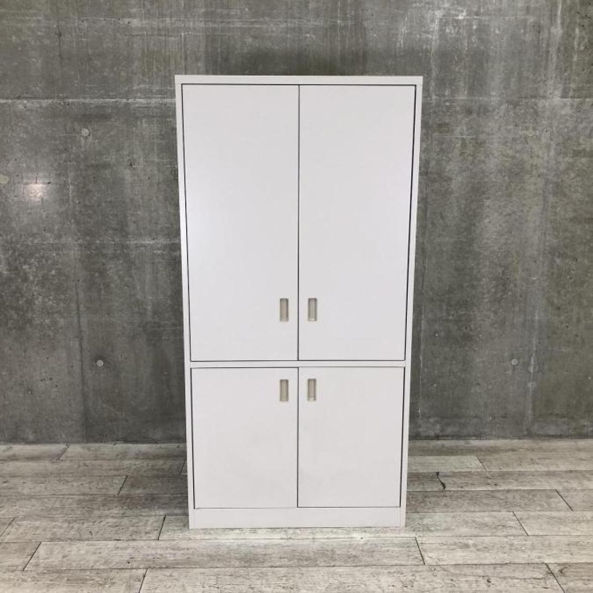 オフィスのキッチン周りをすっきり片付ける両開きキャビネットです。