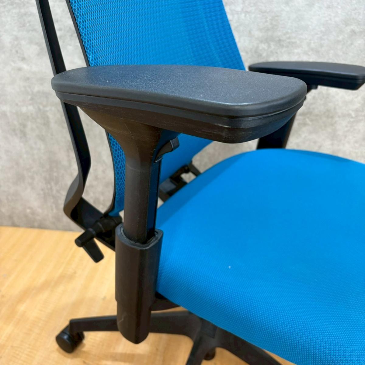 【肘掛けに割れアリ】■コクヨ(KOKUYO)製 デュオラ(Duora)チェア 肘付き ハイバック 背面メッシュ ■可動肘 ■コートハンガー付き ■ターコイズブルー×ブラックシェル