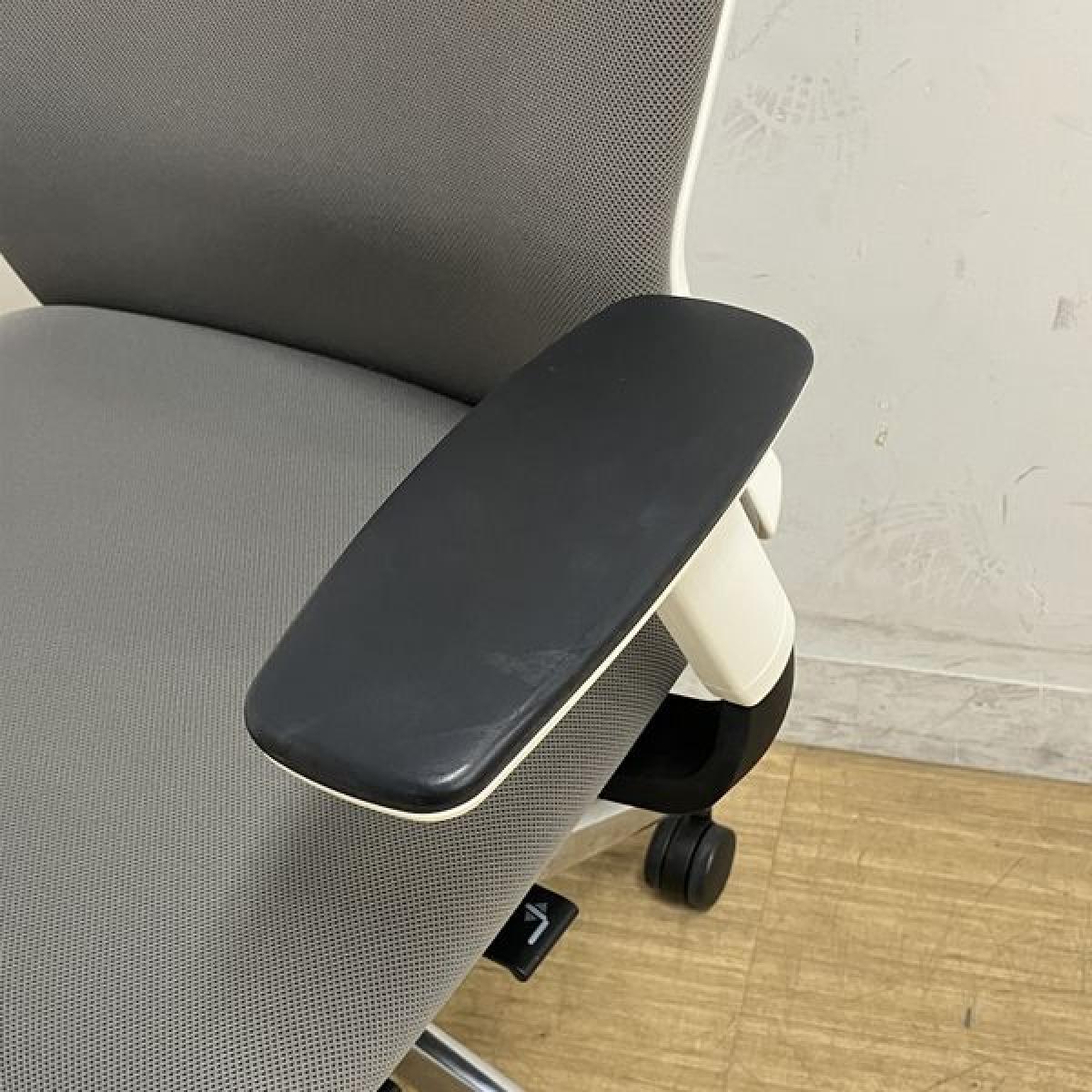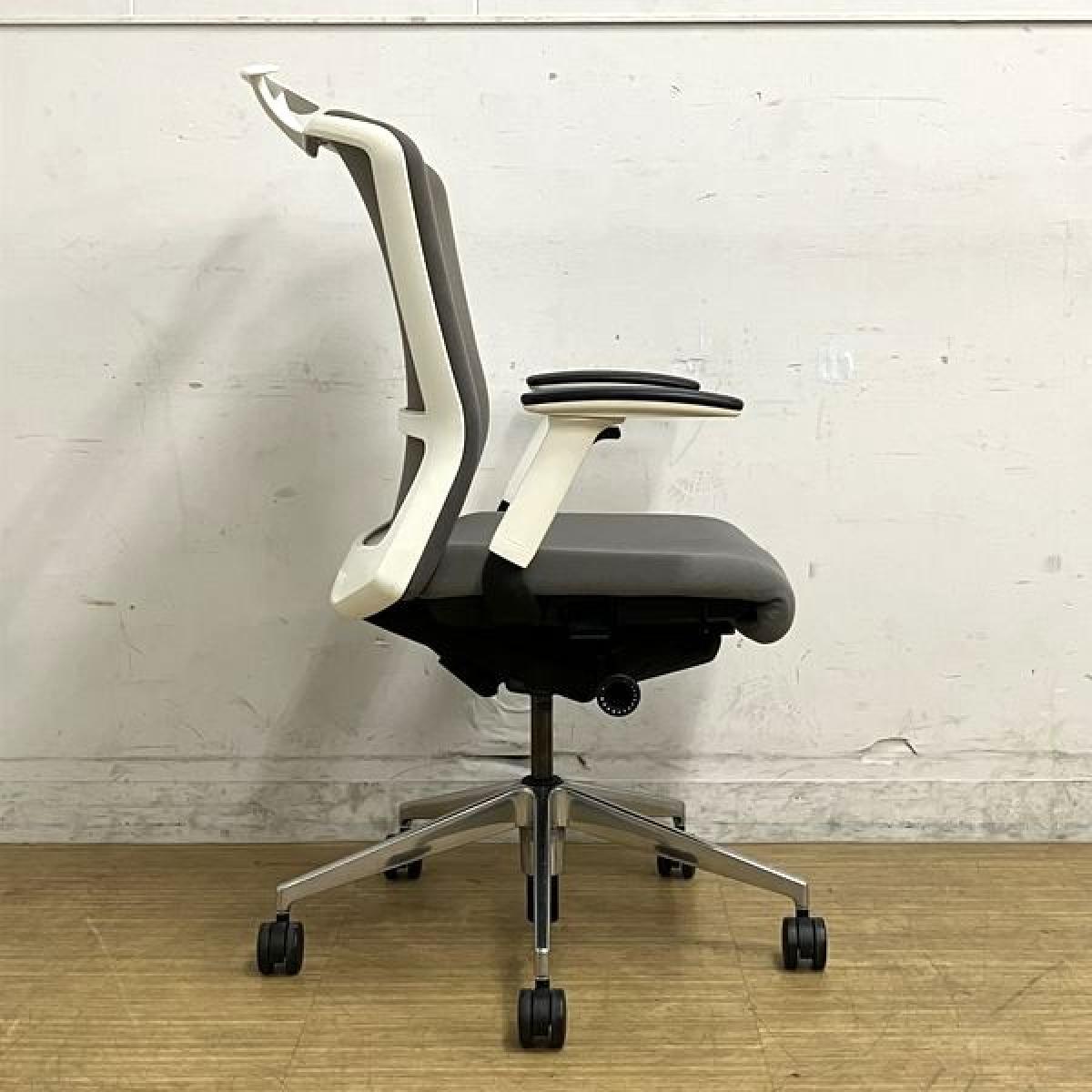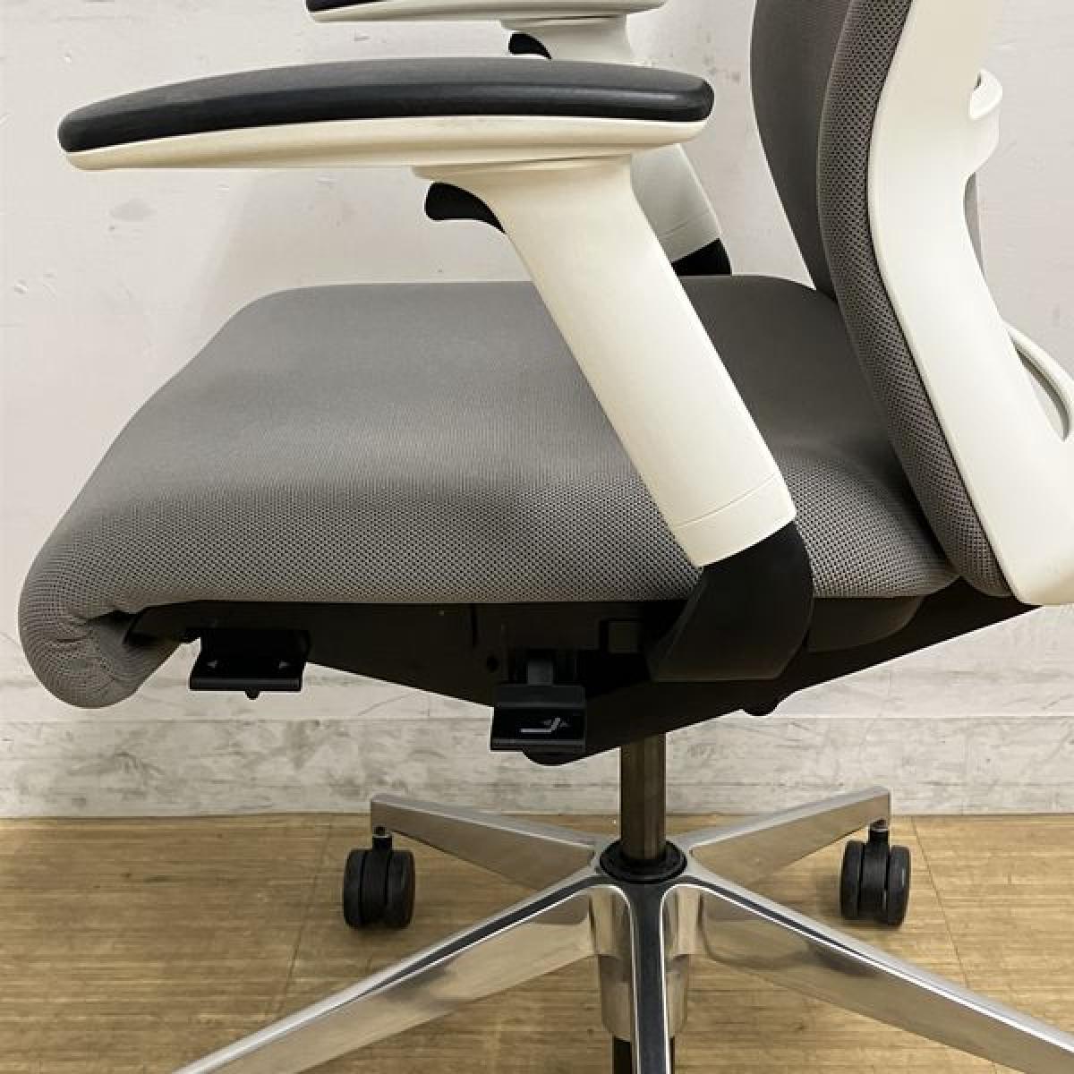 ウチダ エルフィ ミドルバックチェア アジャスタブル肘(可動肘) ミディアムグレイ×ホワイトフレーム クロスバック 【愛知・名古屋・豊田・静岡・浜松】- 名古屋千種店