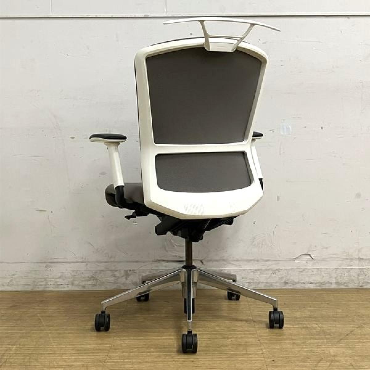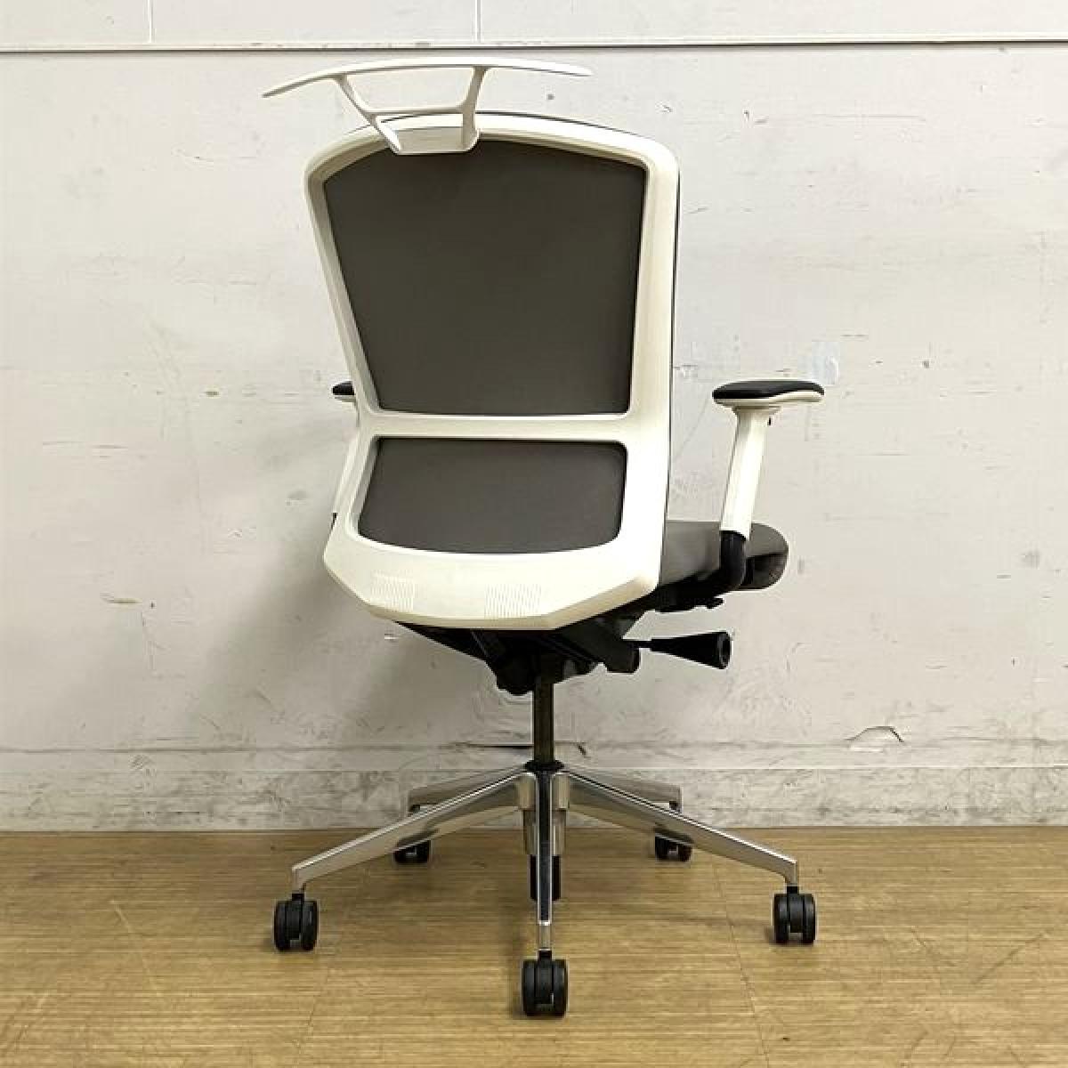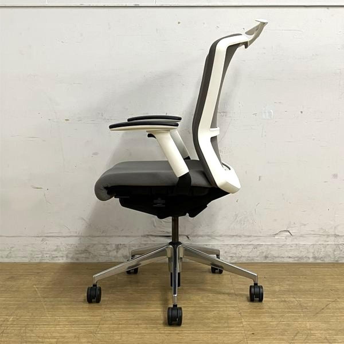 ウチダ エルフィ ミドルバックチェア アジャスタブル肘(可動肘) ミディアムグレイ×ホワイトフレーム クロスバック 【愛知・名古屋・豊田・静岡・浜松】- 名古屋千種店