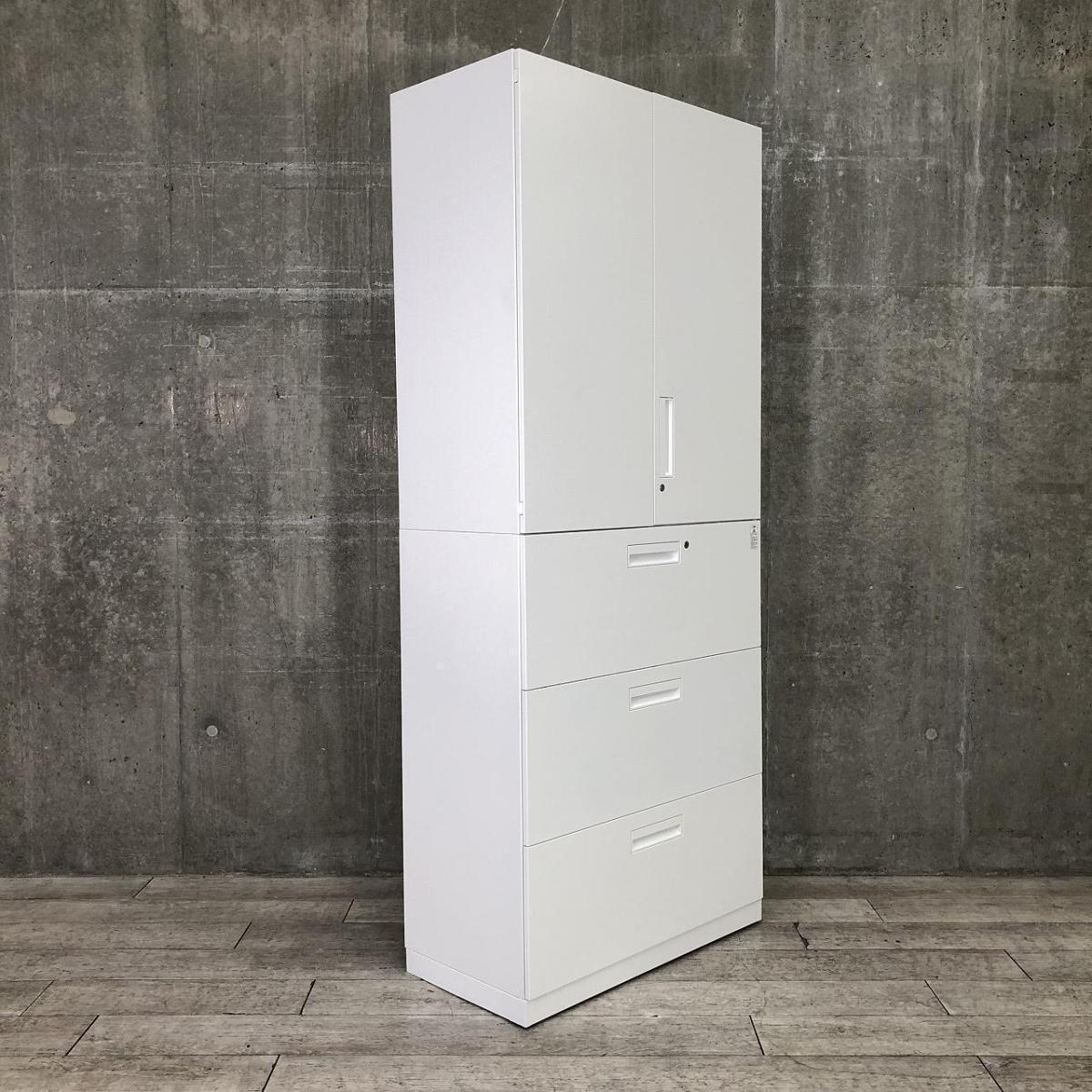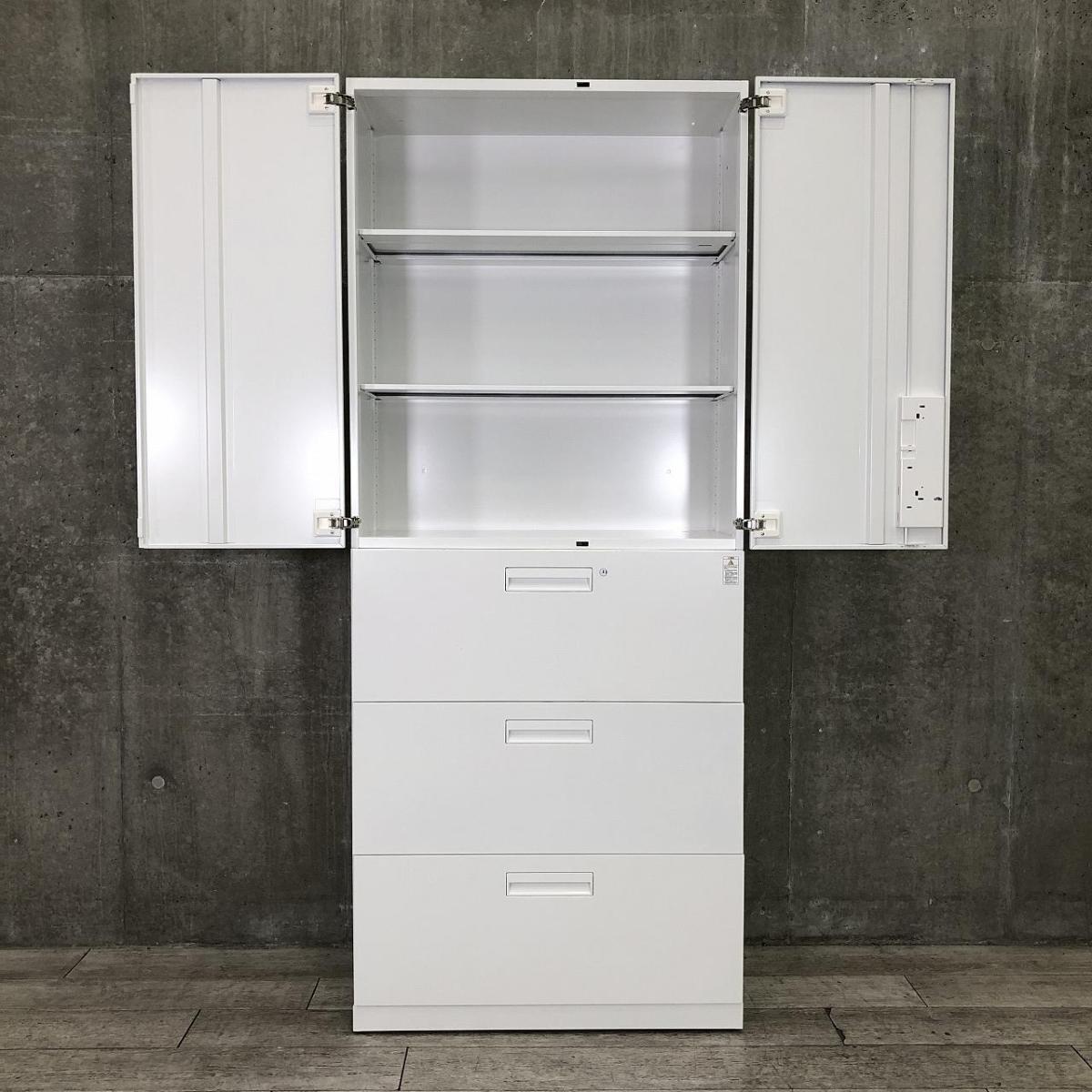 【収納量抜群の書庫セット!観音開き+引き出しタイプの人気の組み合わせ!】/オススメ(おすすめ) /人気商品【弊社使用欄:A01040668】■コクヨ(KOKUYO)製 エディアシリーズ(EDIA) 両開き+3段ラテラル 書庫セット ハイキャビネット ■シリンダー錠 ■ホワイト【IB】