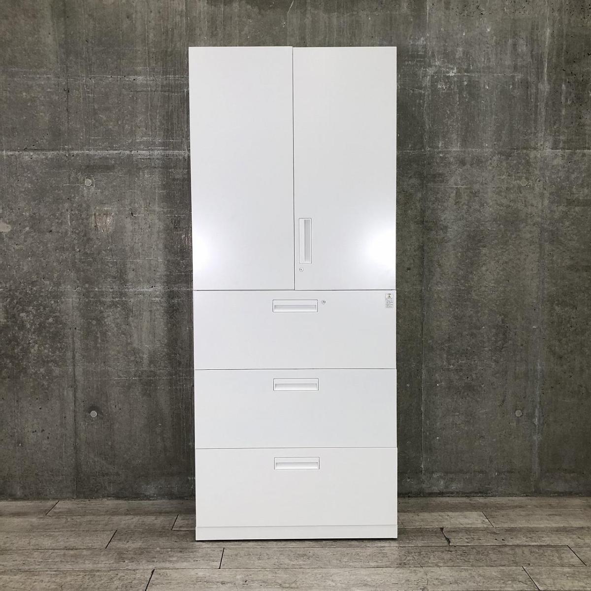 【収納量抜群の書庫セット!観音開き+引き出しタイプの人気の組み合わせ!】■コクヨ(KOKUYO)製 エディアシリーズ(EDIA) 両開き+3段ラテラル 書庫セット ハイキャビネット ■シリンダー錠 ■ホワイト【IB】- 宇都宮サテライト