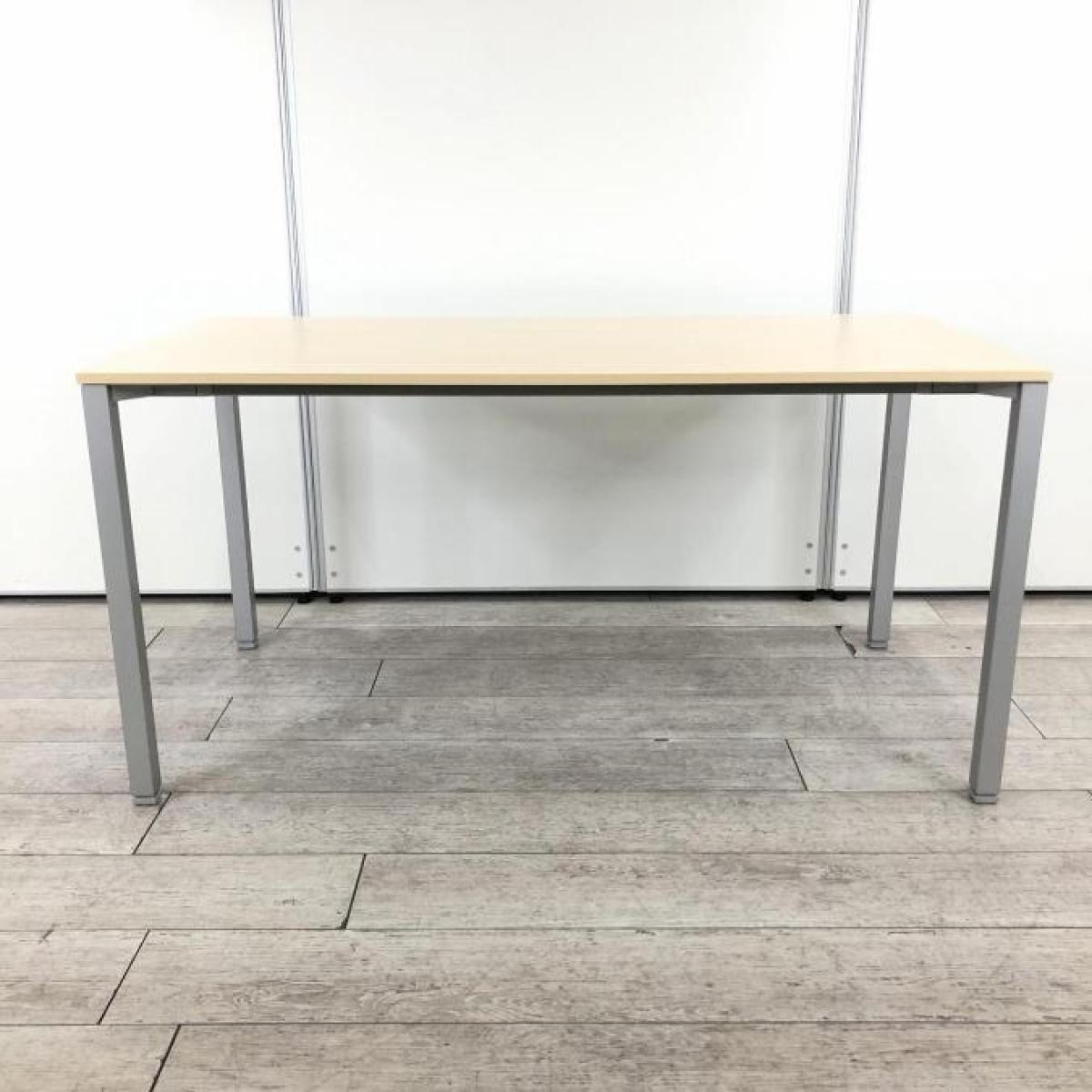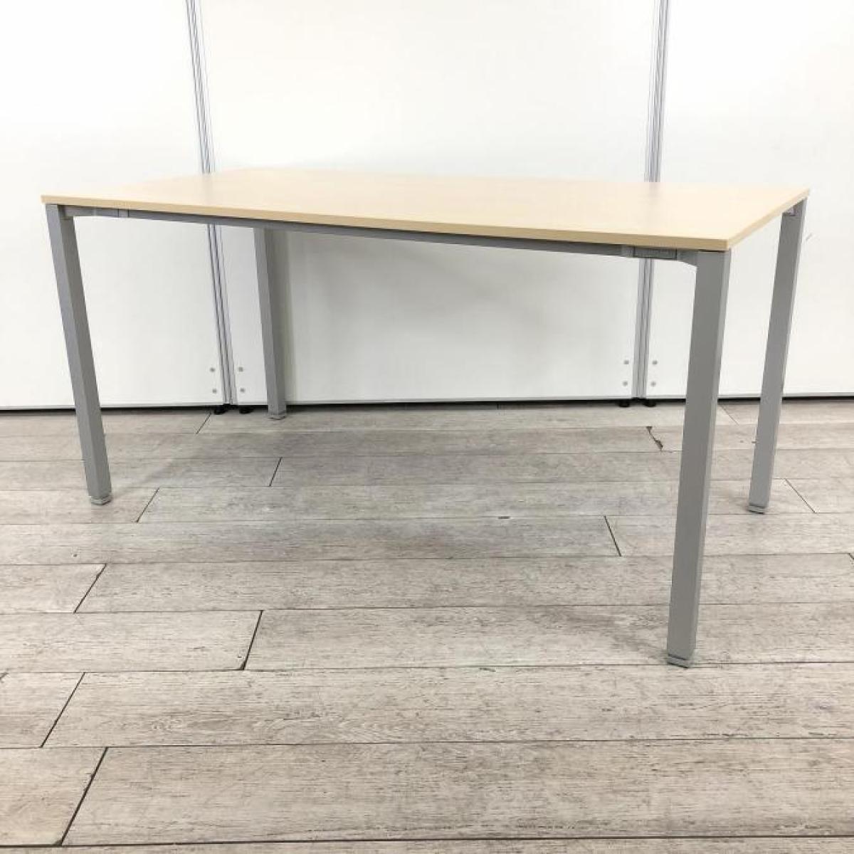 【ゆとりのあるワークスペース!2~4人用にオススメ!】 ■オカムラ(okamura)製 アルツァータシリーズ ワークテーブル 角テーブル 会議テーブル ■W1400×D700×H700mm ■天板:木目ナチュラル/4本脚:シルバー脚