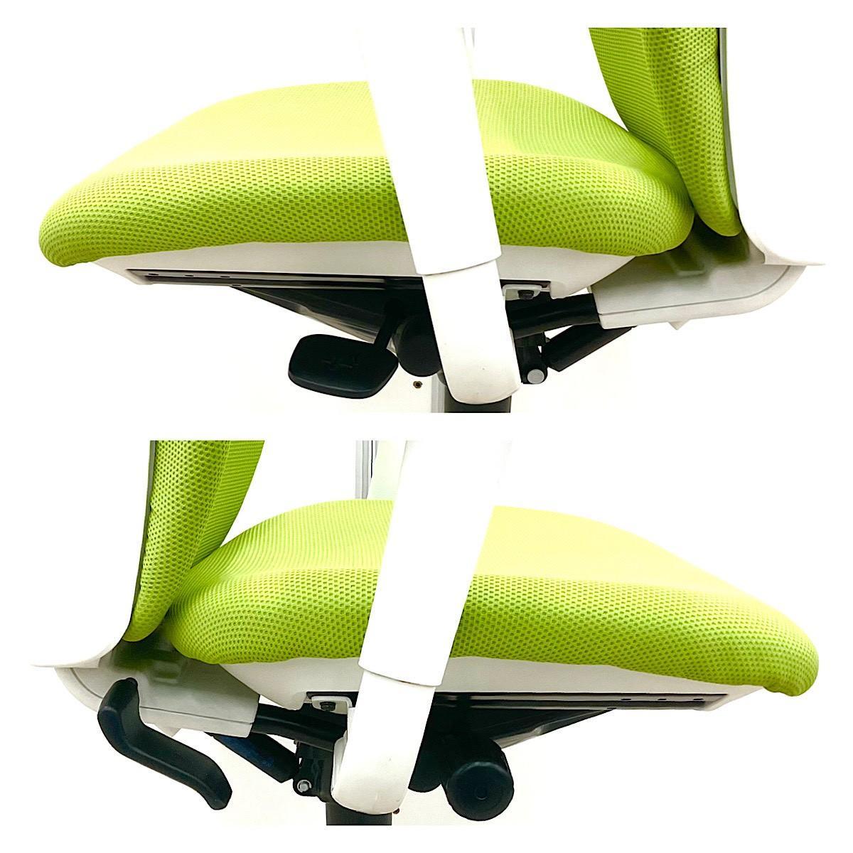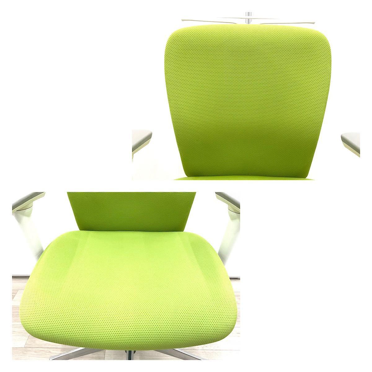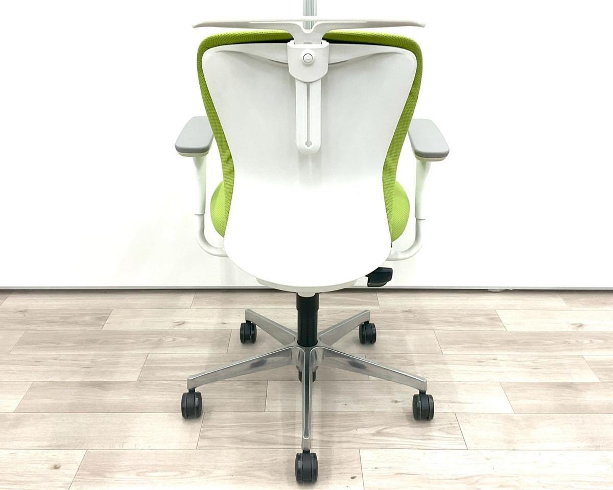 シンプルなデザインと厚みのあるクッションが大人気!機能充実のおすすめワーキングチェア ■オカムラ/スラート(sulato)/ライムグリーン×ホワイトシェル 可動肘付き