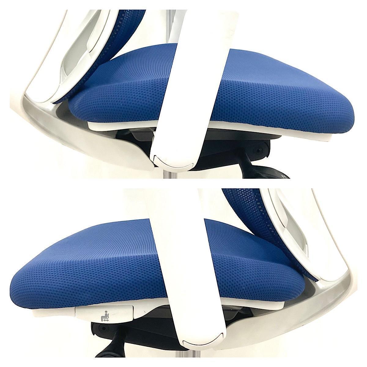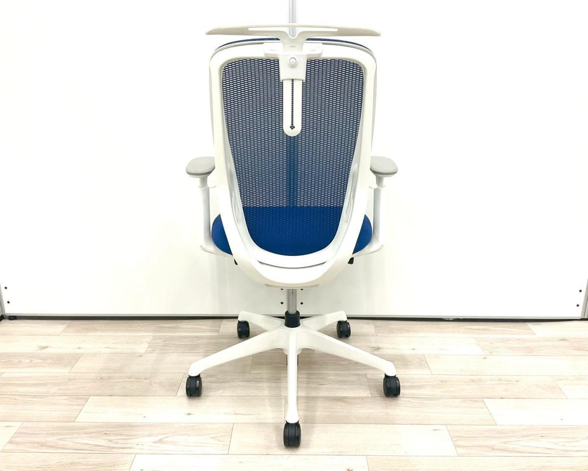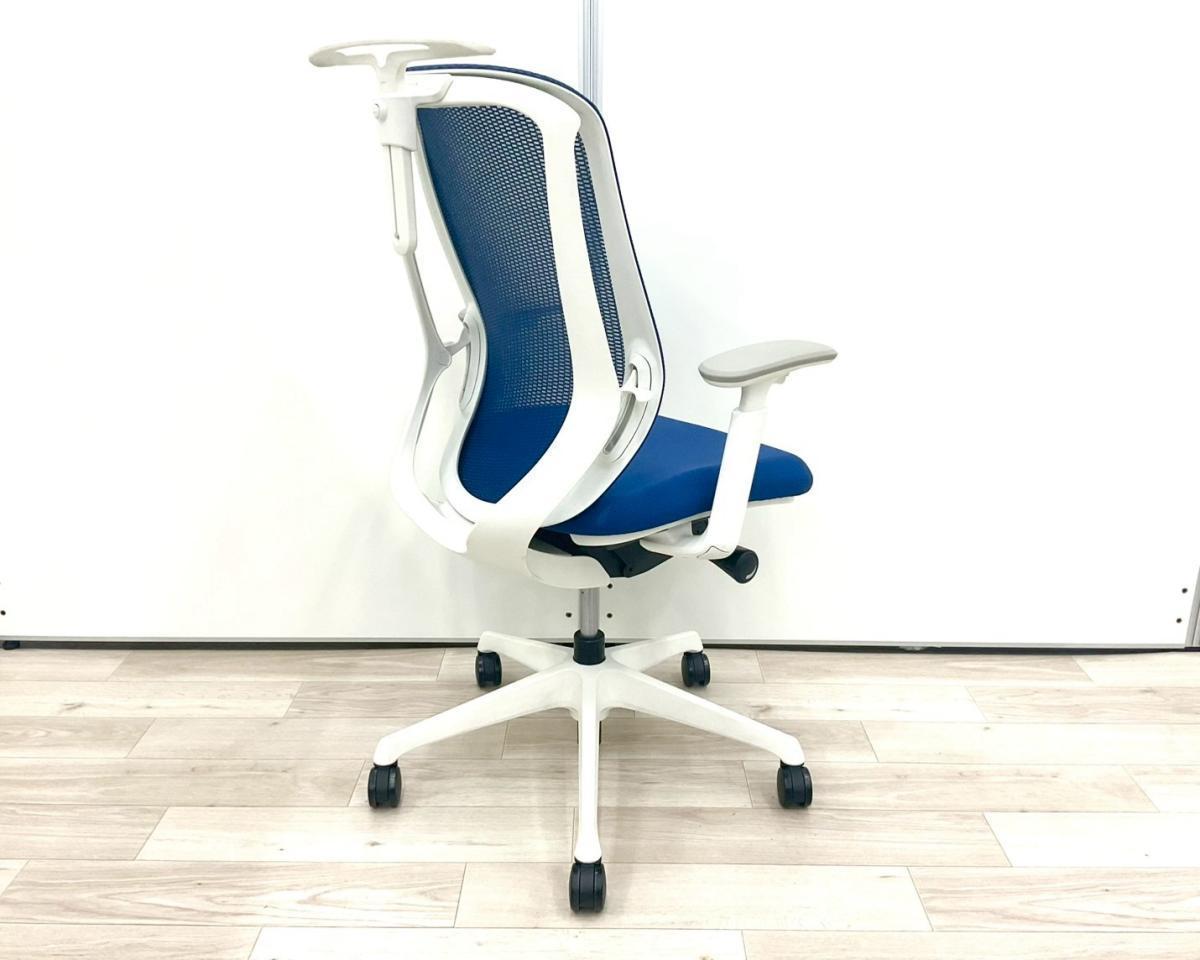 ■オカムラ(okamura)製 シルフィー(Sylphy)チェア ■ハイバック ■背面メッシュ ■可動肘/ハンガー付 ■ミディアムブルー×ホワイトシェル 【弊社使用欄:A01039001】