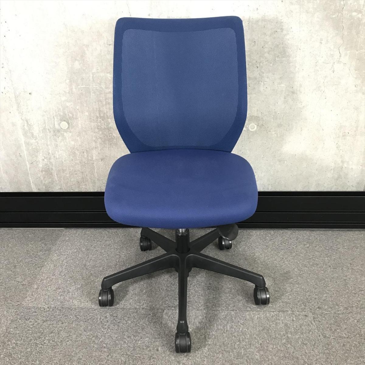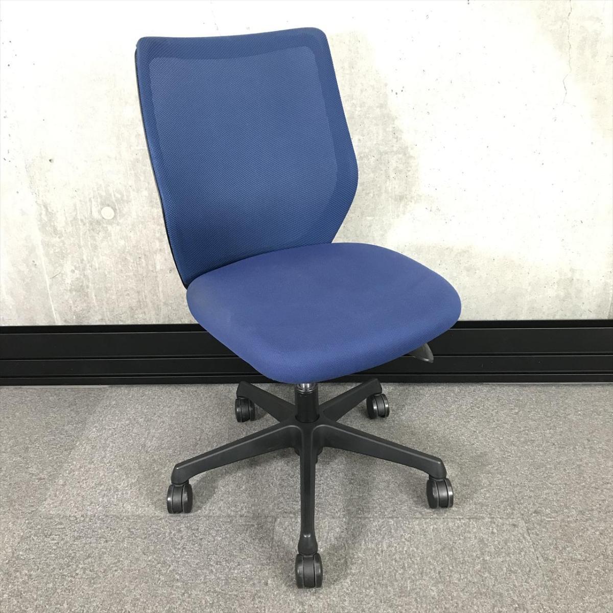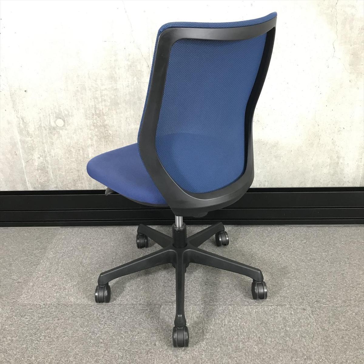 【コンパクトなサイズ感!腰への負担を減らすS字形状!】■オカムラ(okamura)製 CG-Mチェア 肘無し ローバックチェア ■背面メッシュ ■ミディアムブルー オフィスバスターズ 水戸サテライト- 水戸サテライト