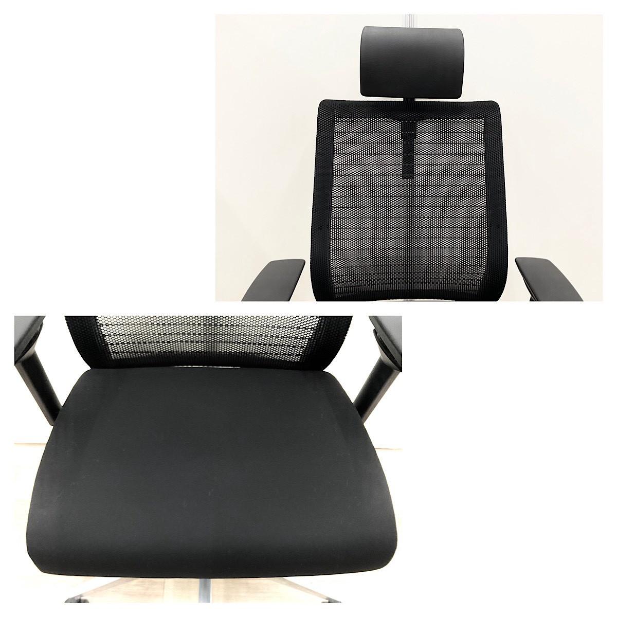 【あなたの座るを考える!ワイヤー構造が体を支える】■スチールケース(Steelcase)製 シンク(think)チェア 肘付ハイバック ■可動肘・ヘッドレスト付き ■ブラック