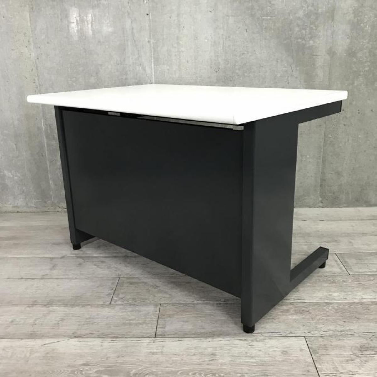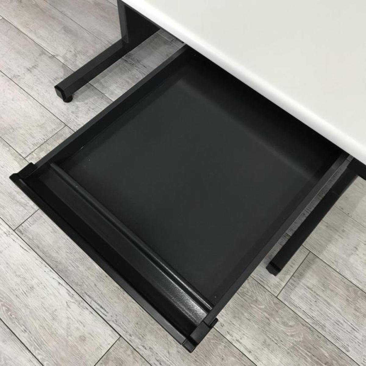 【西】【コンパクトで頑丈なオフィスデスク】ホワイト天板とブラック脚のコントラストがオシャレな平デスクが入荷!■PLUS(プラス)フラットライン 平机 ■ホワイト×ブラック 【デスク】【机】【格安】【安い】【福岡オフィス家具】【福岡中古家具】【中古事務什器】