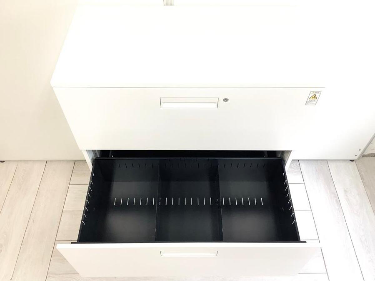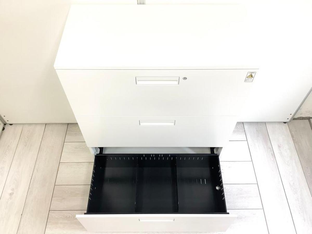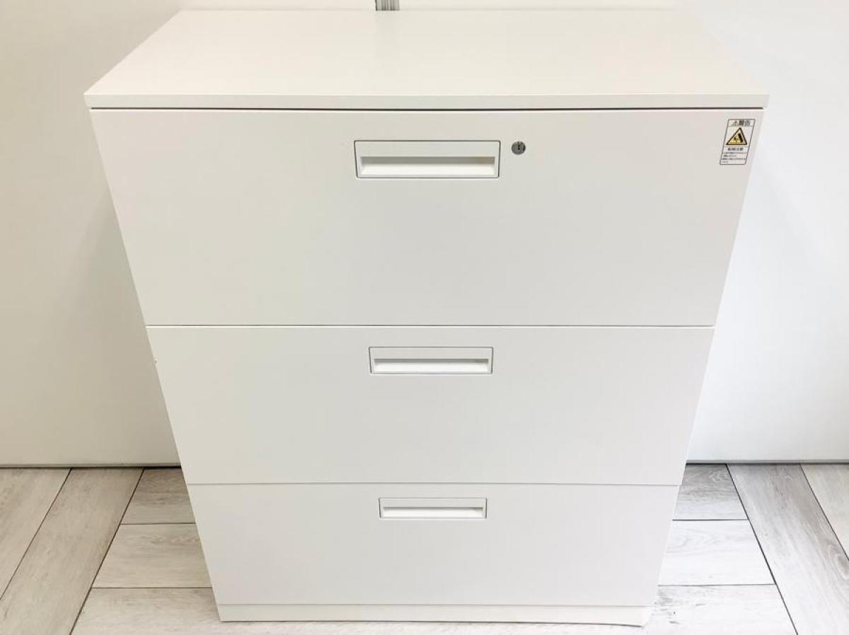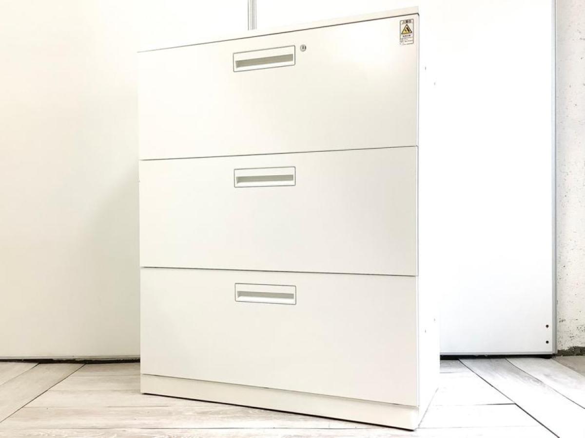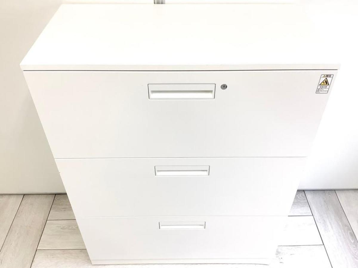 A4書類が大量に収納可能!天板付きの3段ラテラルキャビネット!■コクヨ/エディア/ホワイト オフィスバスターズ 水戸サテライト