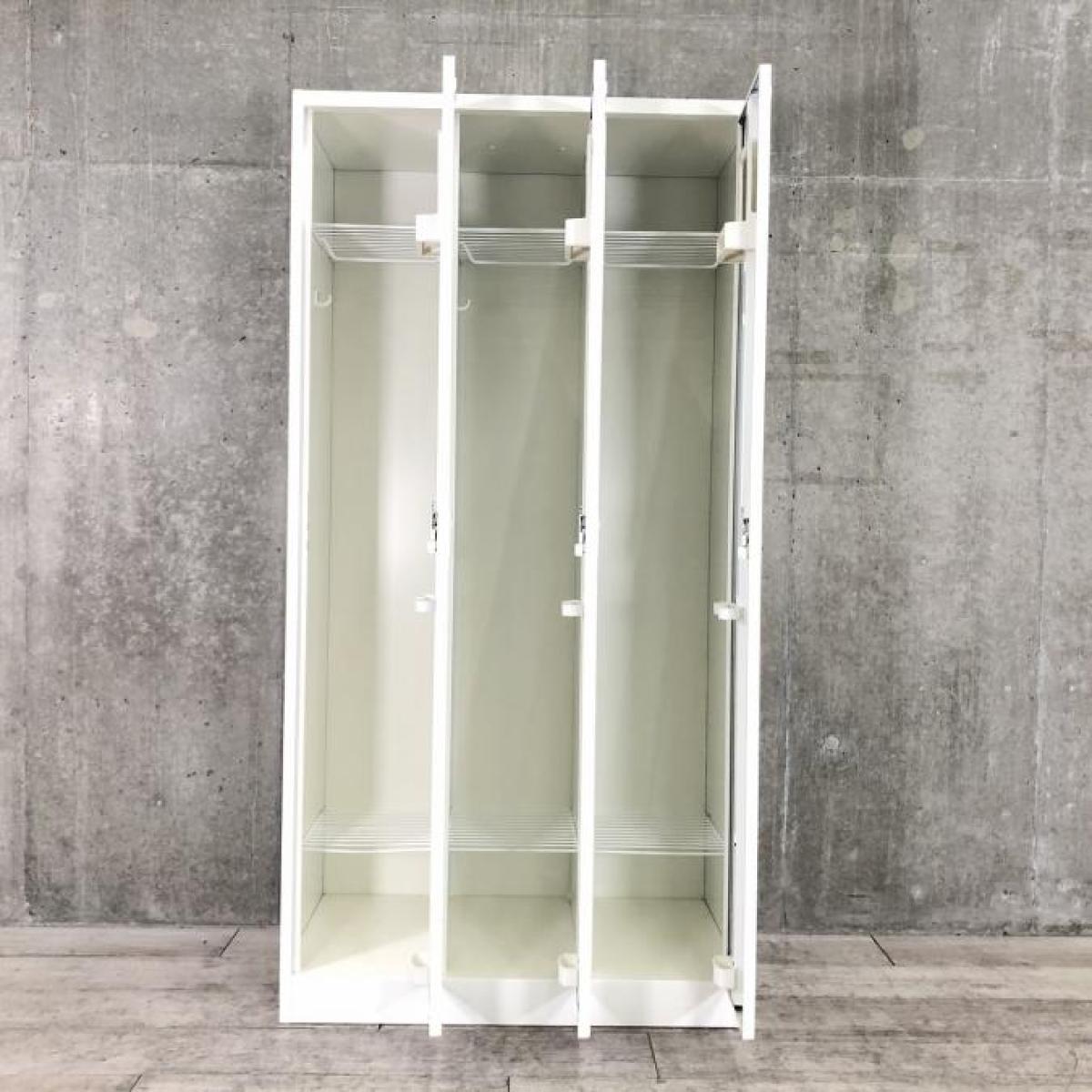 ★【一部、サビあり】オカムラ製 FZ ホワイト W900xD515xH1790サイズ シリンダー ゆとりのある収納スペース! 衣類や個人の荷物・貴重品の管理にオススメ! 3人用更衣ロッカー!!