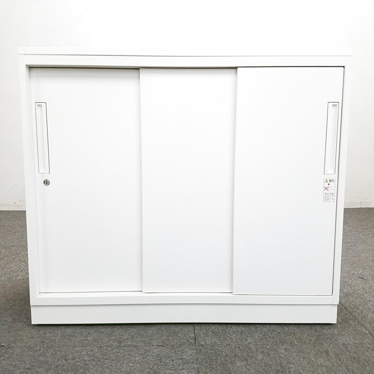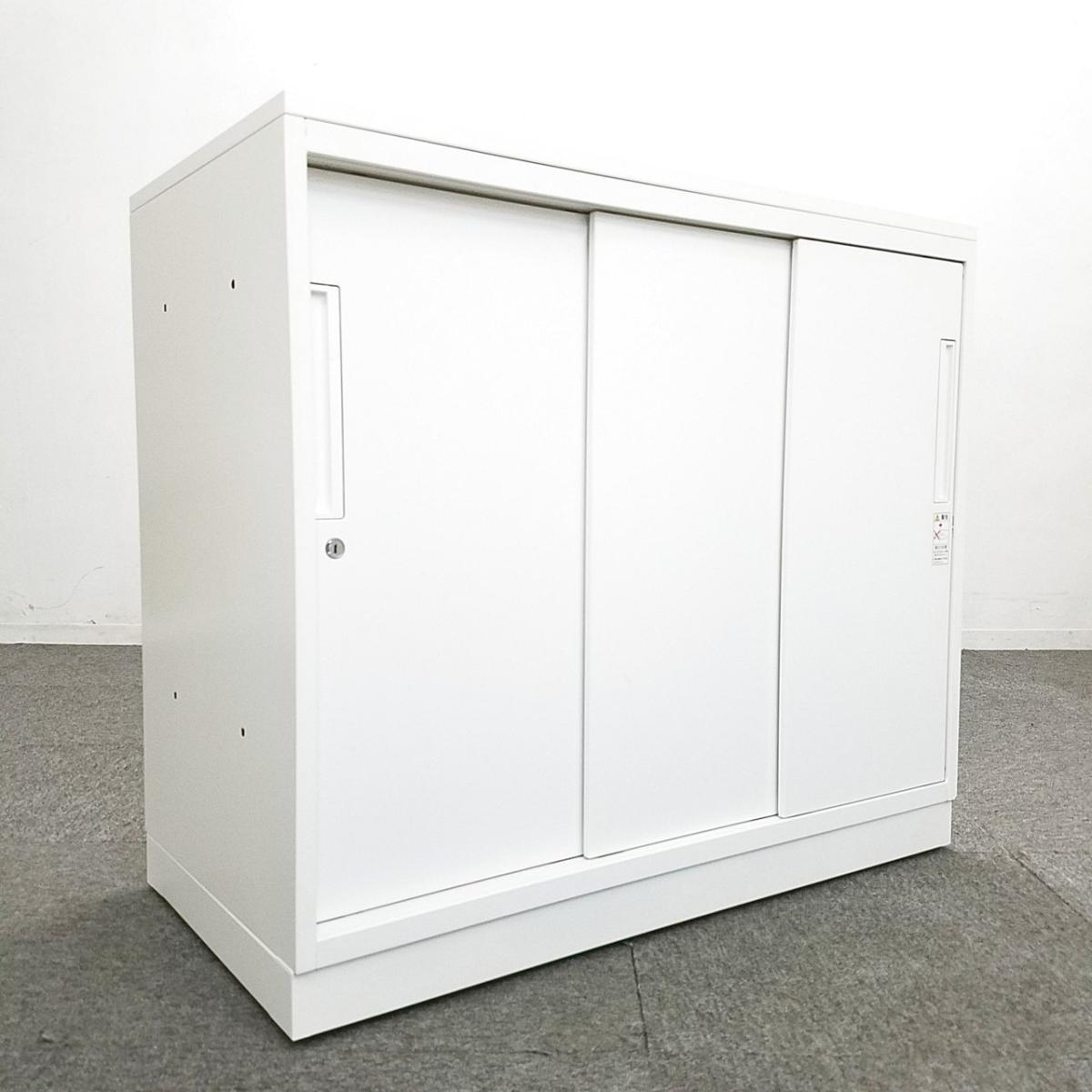 【手狭なオフィスで大活躍!導線を確保できる引き違い戸のキャビネット!】■コクヨ(KOKUYO)製 エディア(EDIA)シリーズ 引き違い書庫 ローキャビネット ■3枚扉 ■シリンダー錠 ■天板・ベース付き ■ホワイト